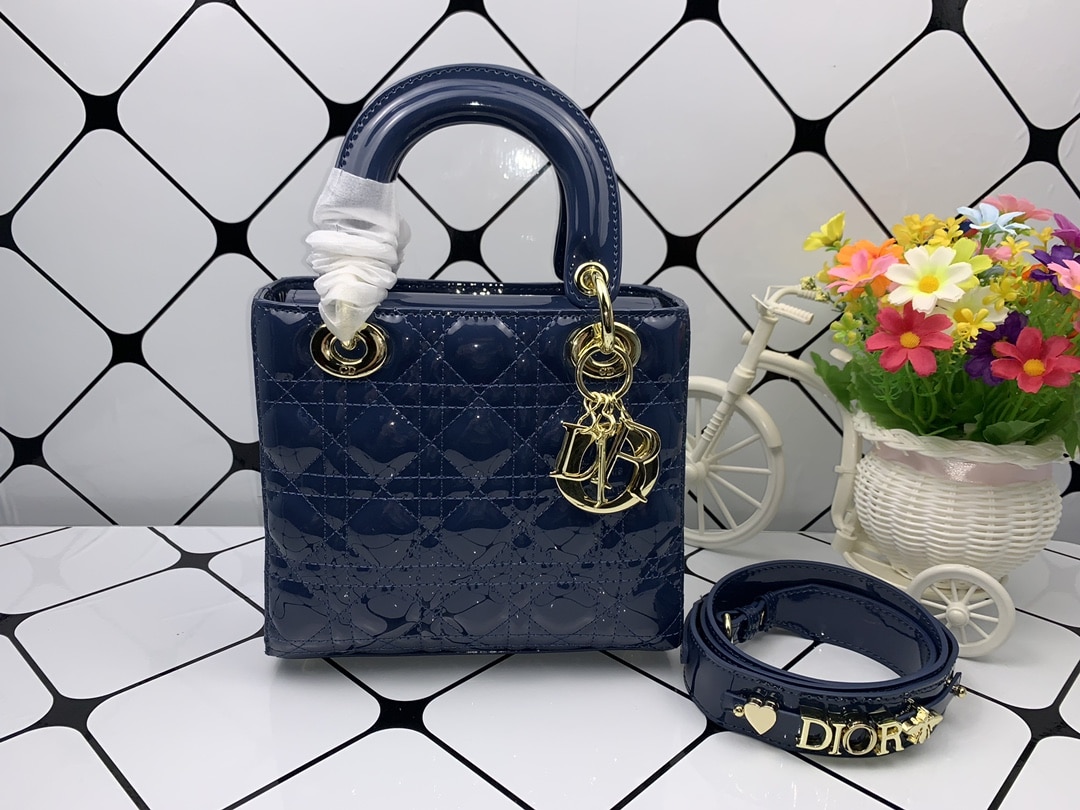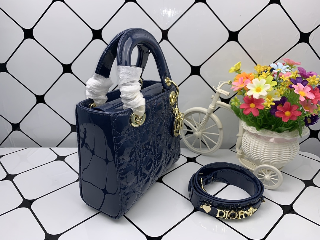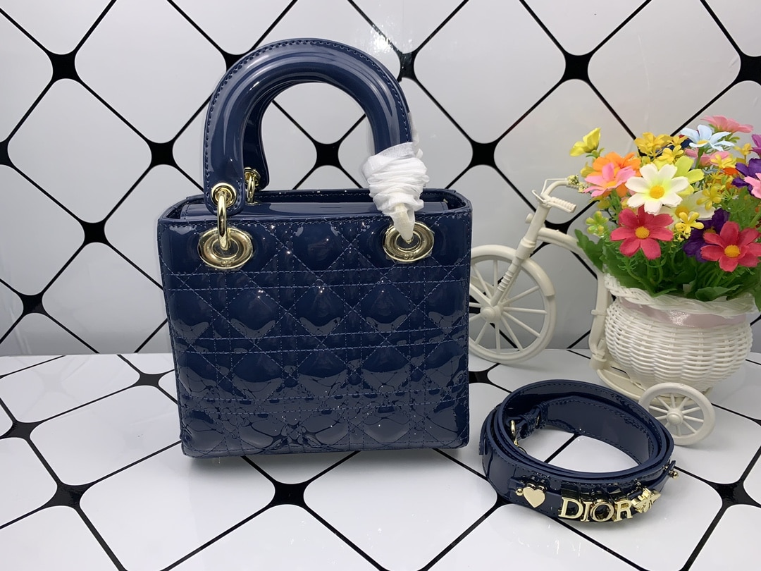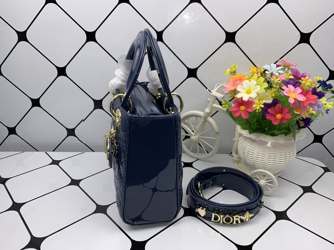 DIOR MEDIUM LADY BLUSH CANNAGE BAG DARK BLUE 20CM