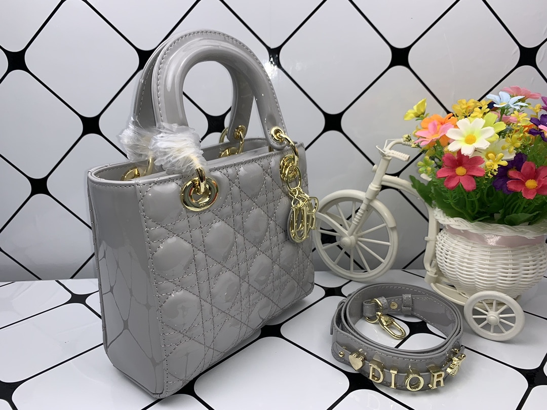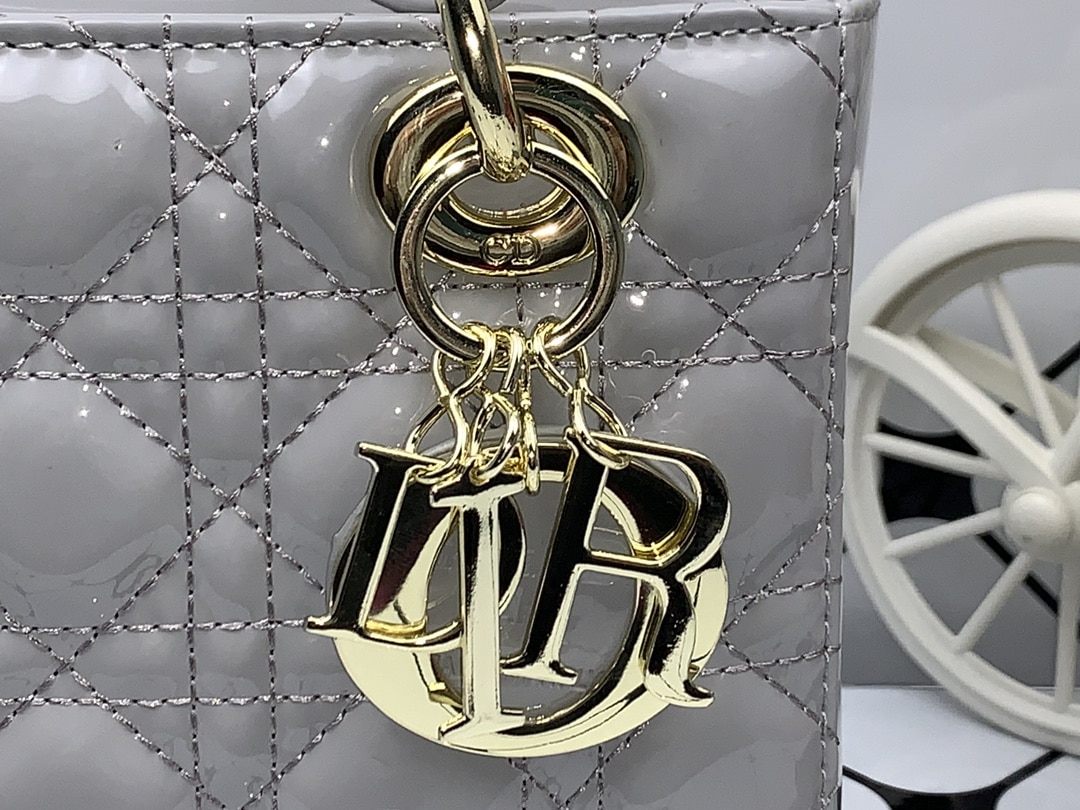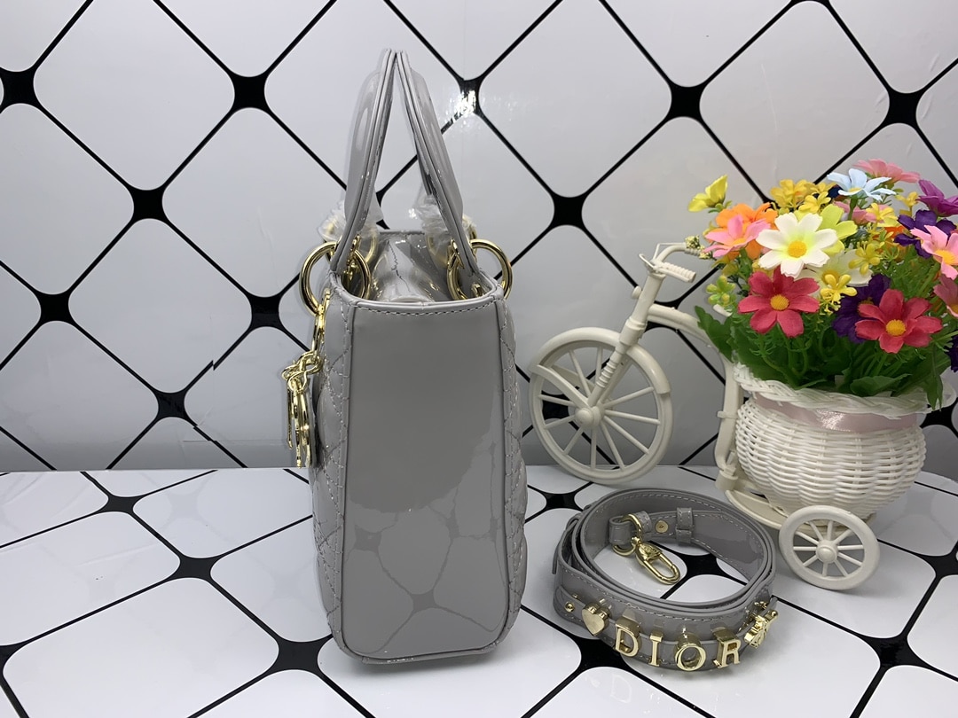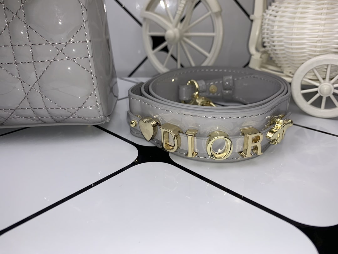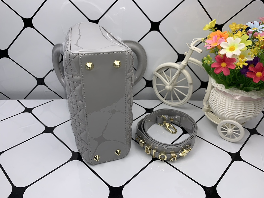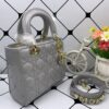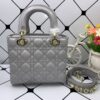 DIOR MEDIUM LADY BLUSH CANNAGE SHOULDER BAG GREY 20CM