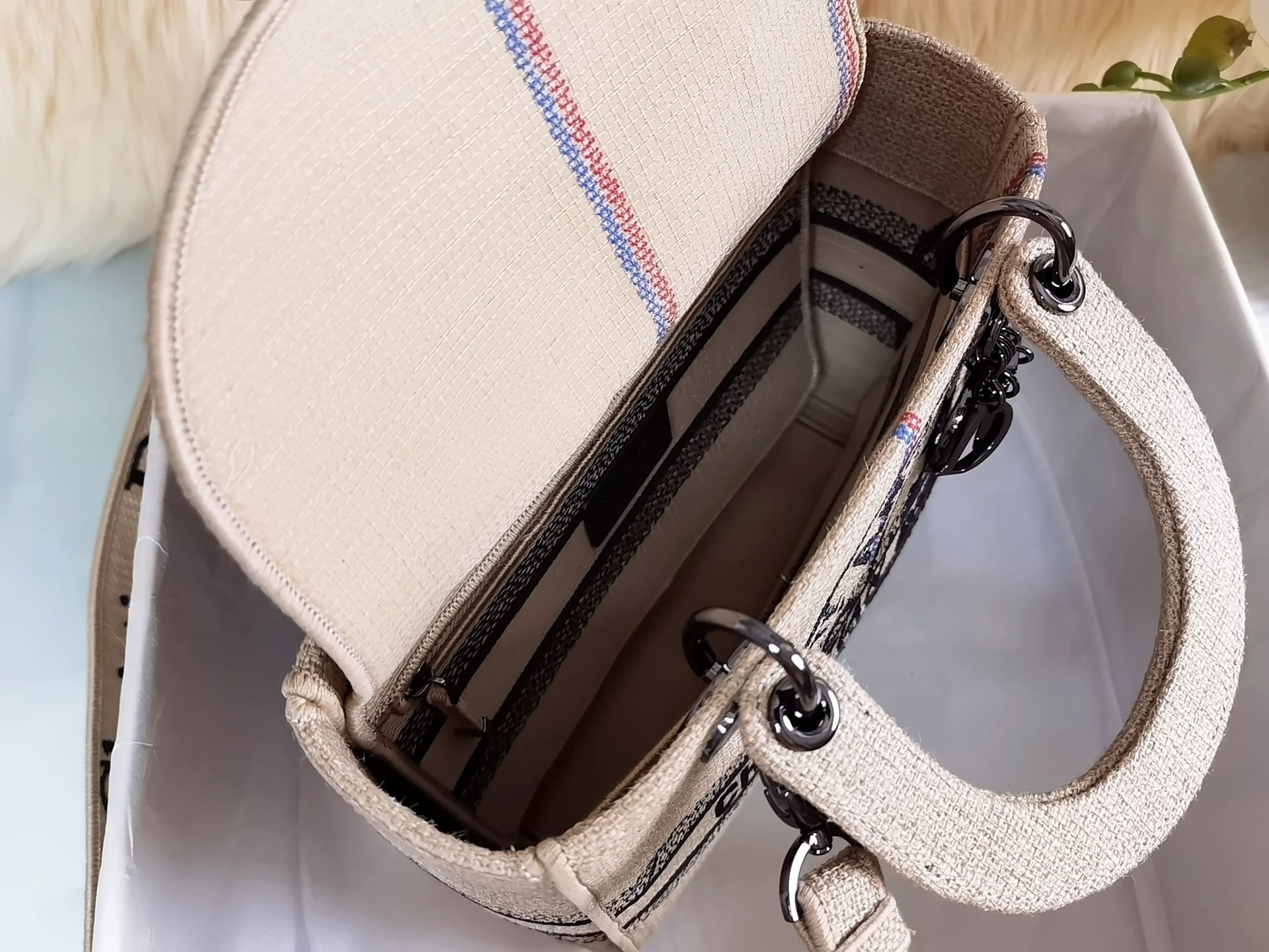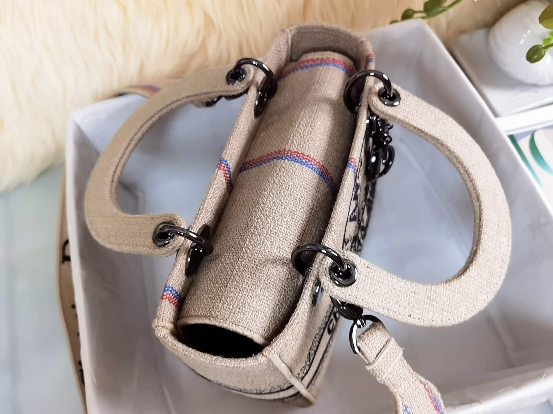 Dior Medium Lady D-Lite Bag Beige Jute Canvas Embroidered with Union Motif M0565BRUW_M918 24CM