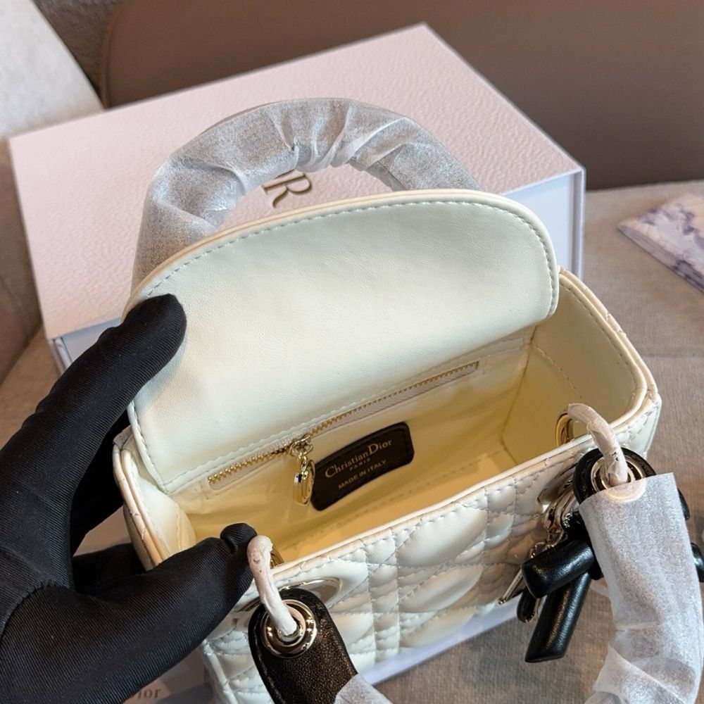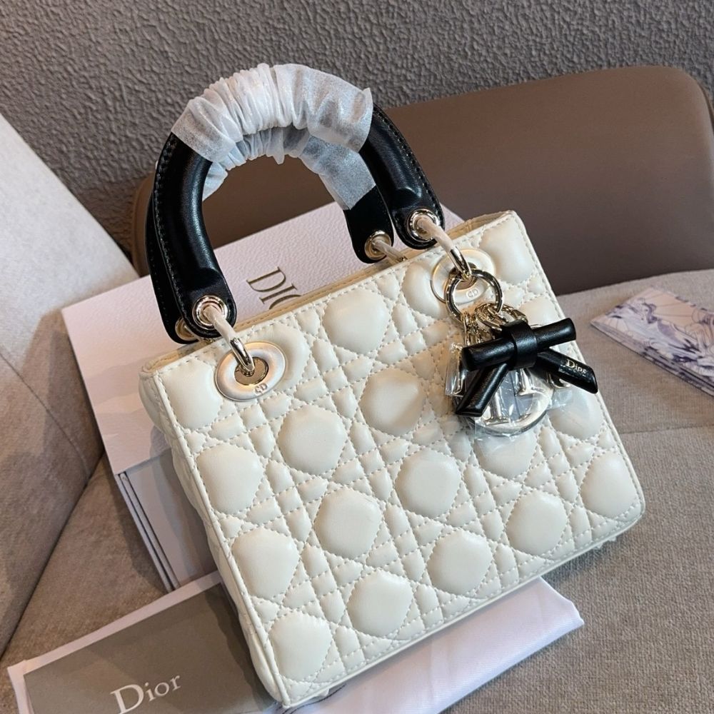 Dior Medium Lady Dior Bag With Chain White and Black 20Cm