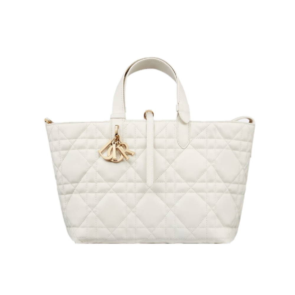 Dior Medium Toujours Bag / White / 11 x 8.5 x 6.5 inches / Gold tone Hardware / Chic Style