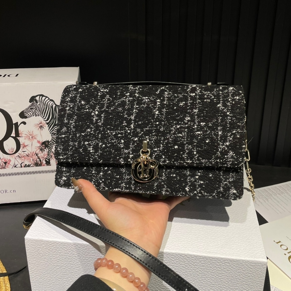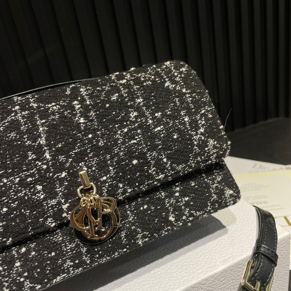 Dior Miss Dior Bag Black Cannage Tweed 24cm/ 9.4 inches