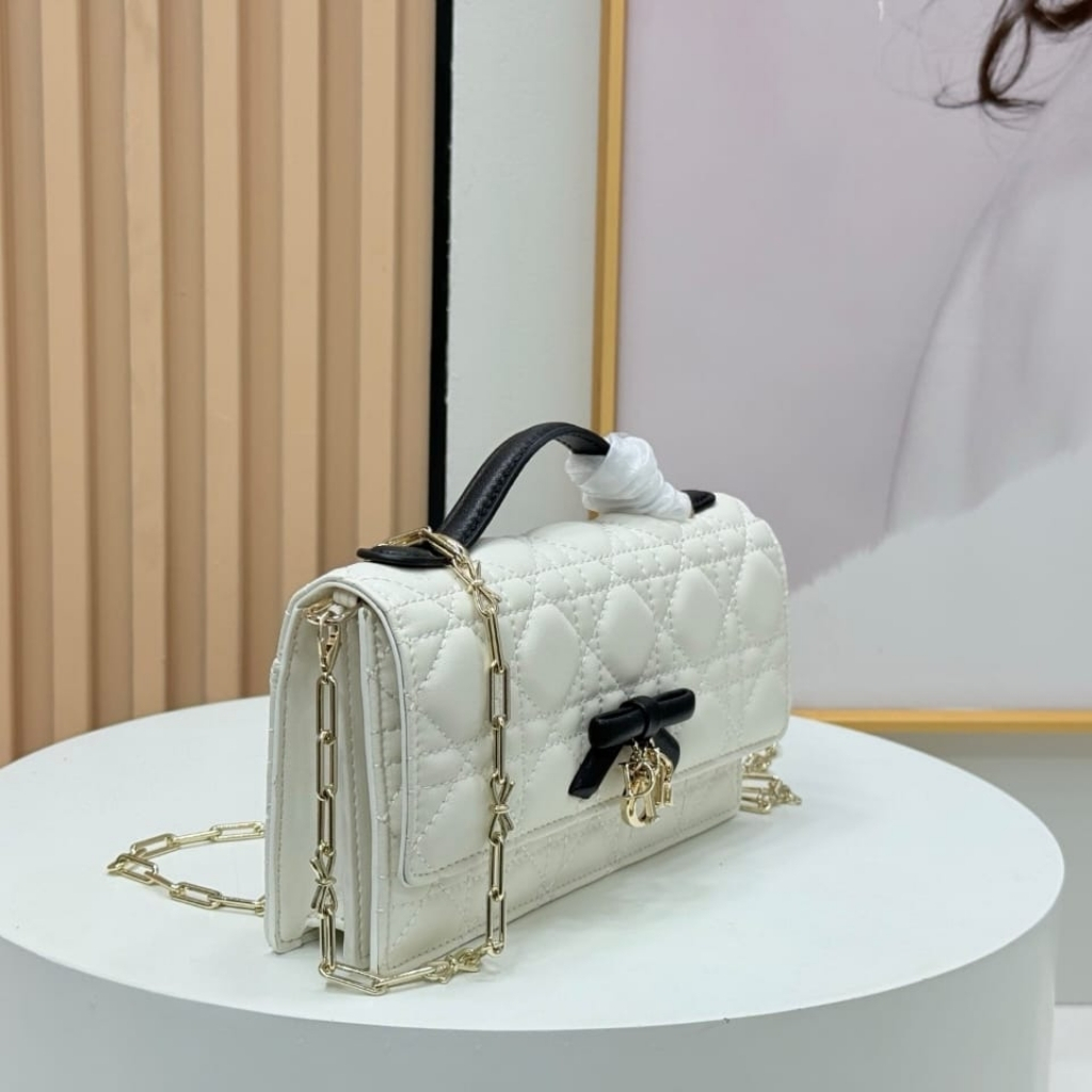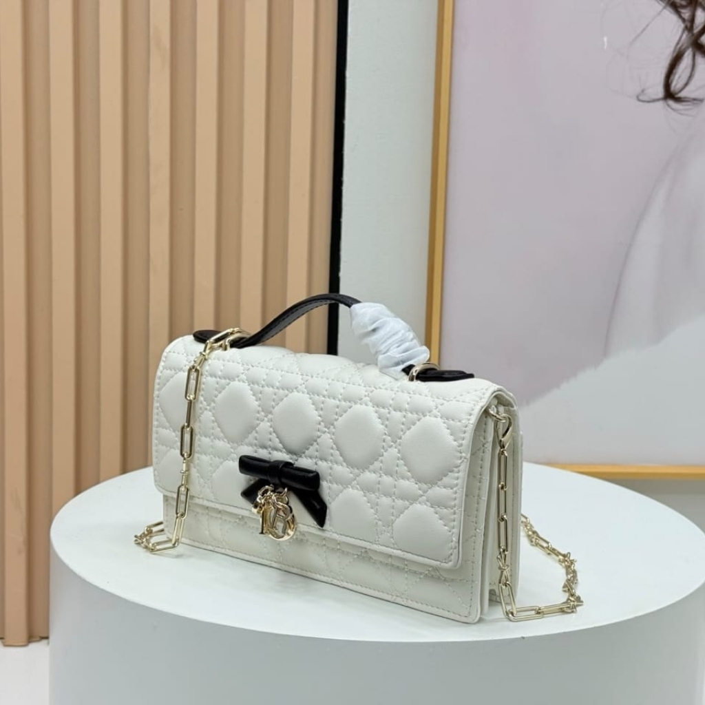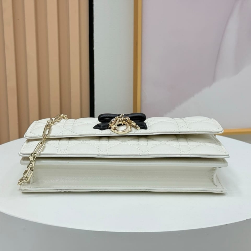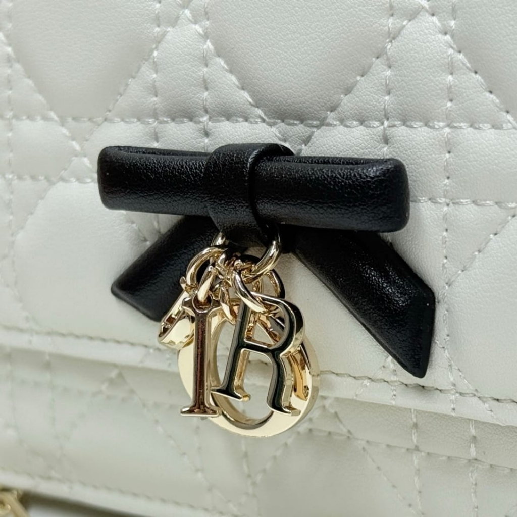 - Decorative bow with D.I.O.R. charms on the front