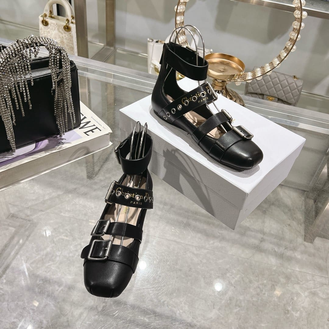 DIOR PUNK BALLET FLAT SUPPLE LEATHER BLACK KCB947VSO S900