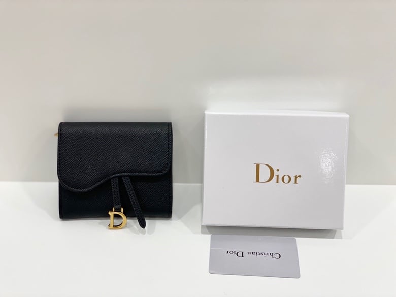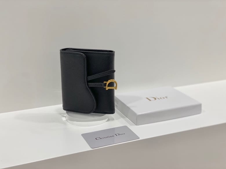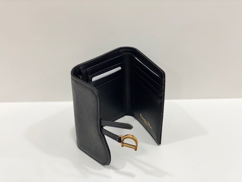 DIOR SADDLE LOTUS WALLET BLACK GOATSKIN 11CM S5652CCEH M900