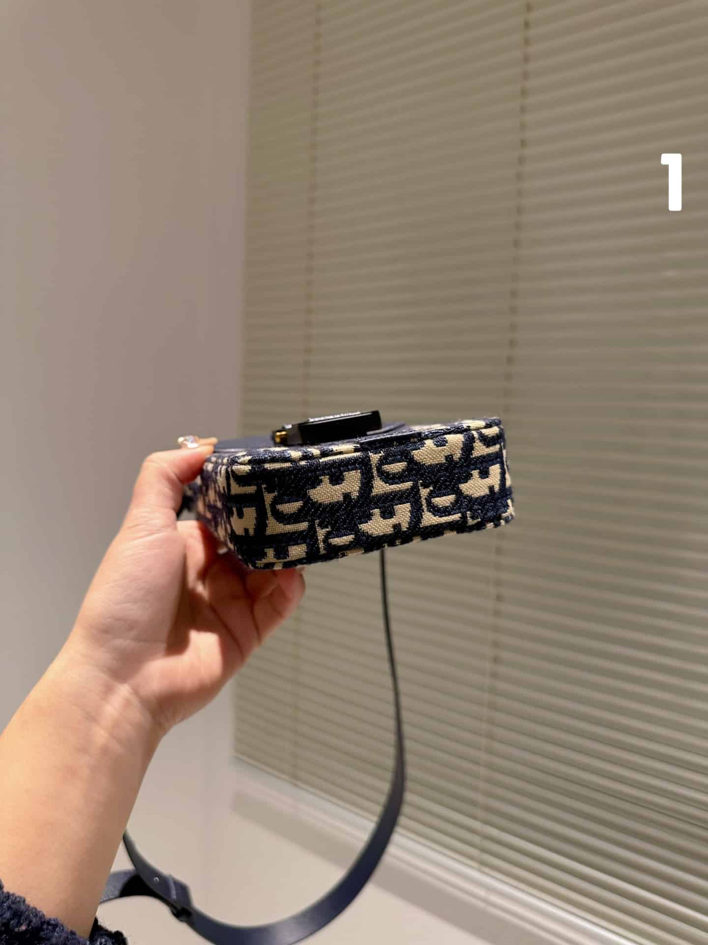- Aluminum buckle with Christian Dior signature and CD initials on flap closure
