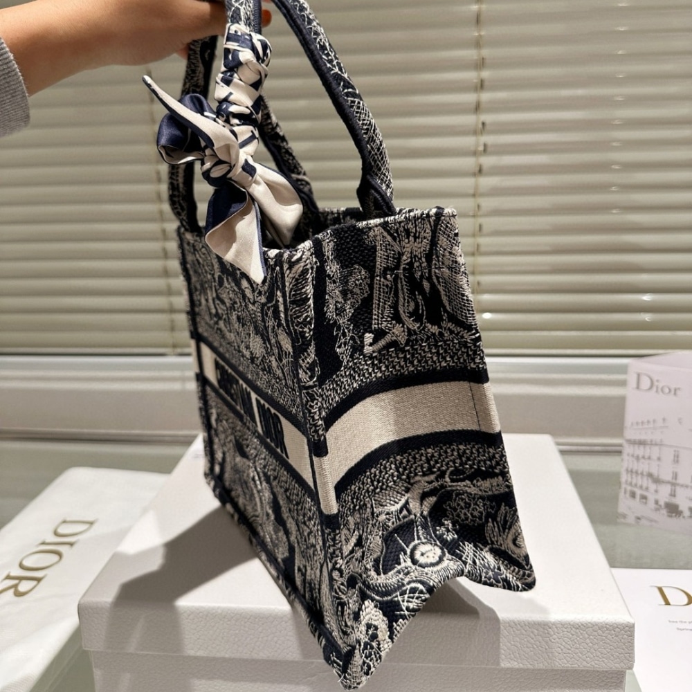 Dior Small Book Tote Toile De Jouy Reverse Embroidery Blue M1265ZRGO M35I/ 26 cm / 10.2 inches