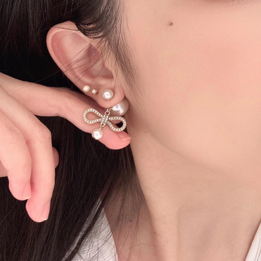 Dior Tribales Earrings In Bow Shaped With Pearls Gold