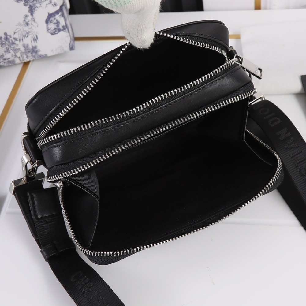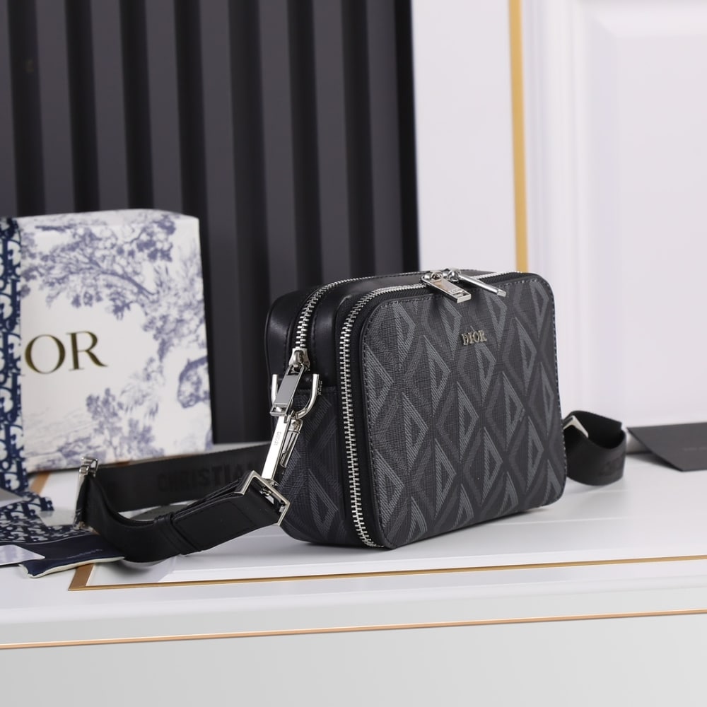 DIOR ZIPPED POUCH WITH STRAP DIOR BLACK COATED COTTON CANVAS WITH CD DIAMOND PRINT 17CM