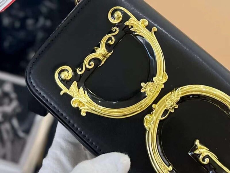 Dolce Gabbana Girls Calf Leather Chain Clutch / Black 19Cm