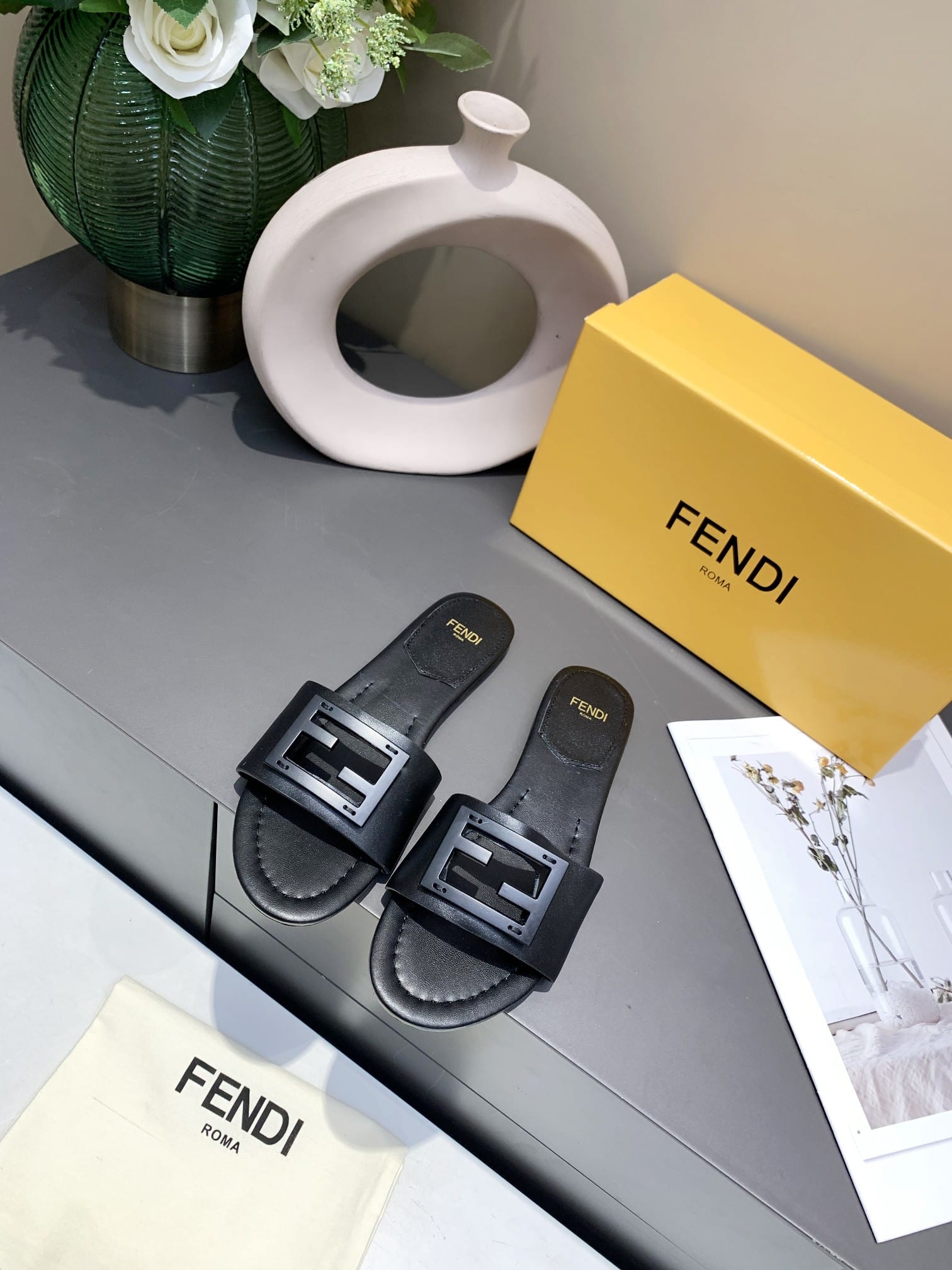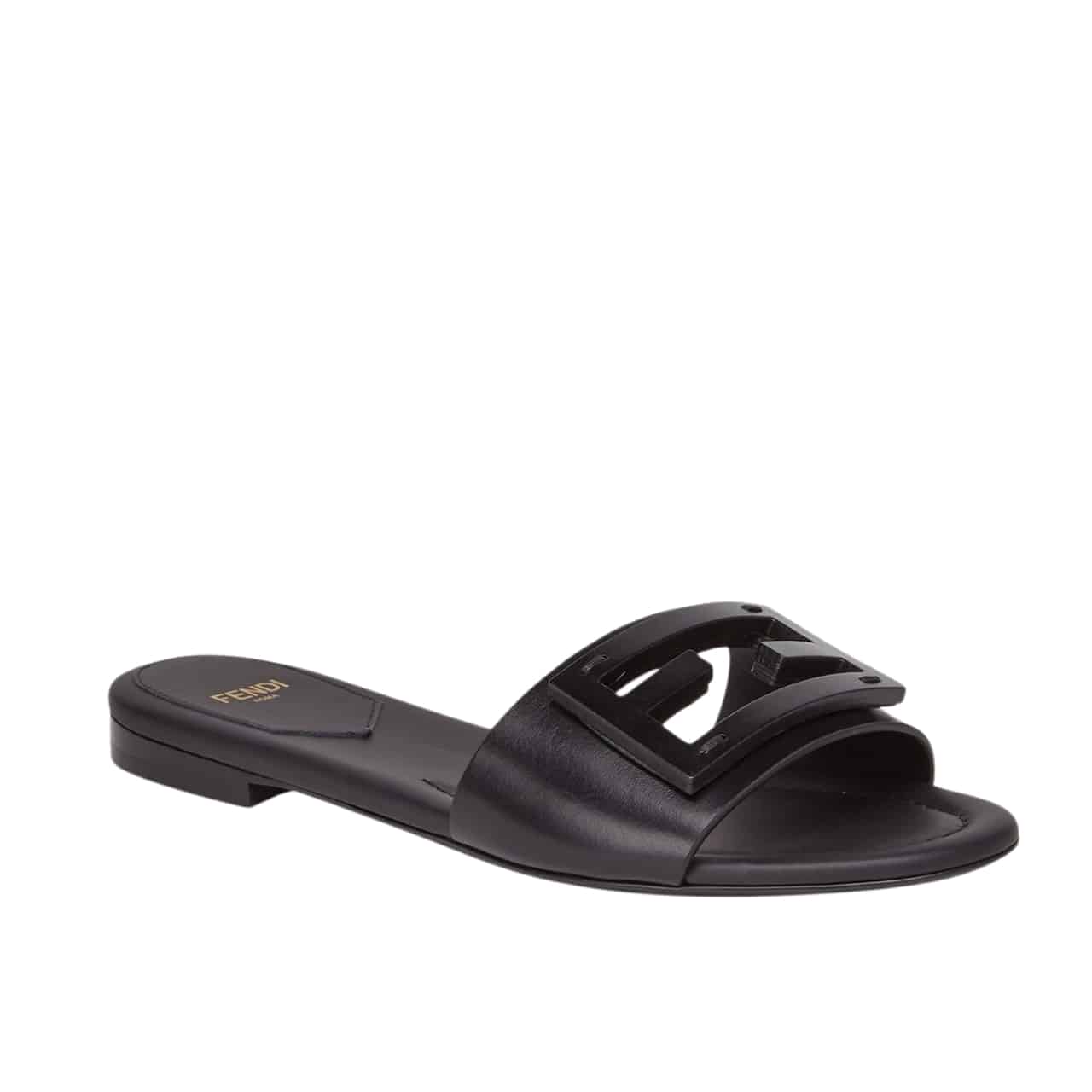 FENDI BAGUETTE LEATHER SLIDE BLACK 8R8136 AE7T F0ABB