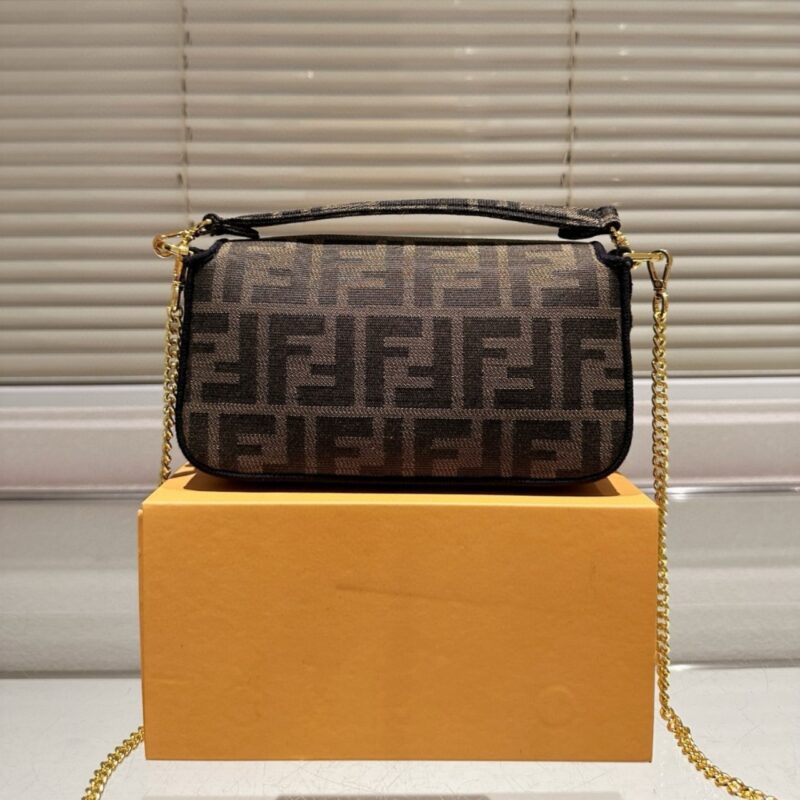 Fendi Baguette Mini Brown FF jacquard fabric bag 20Cm / 7.9 inches