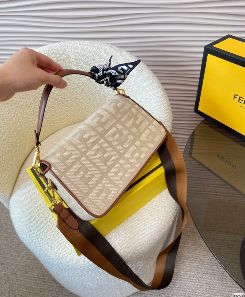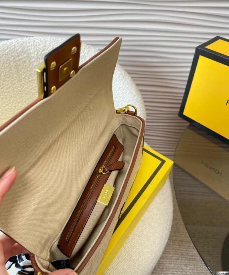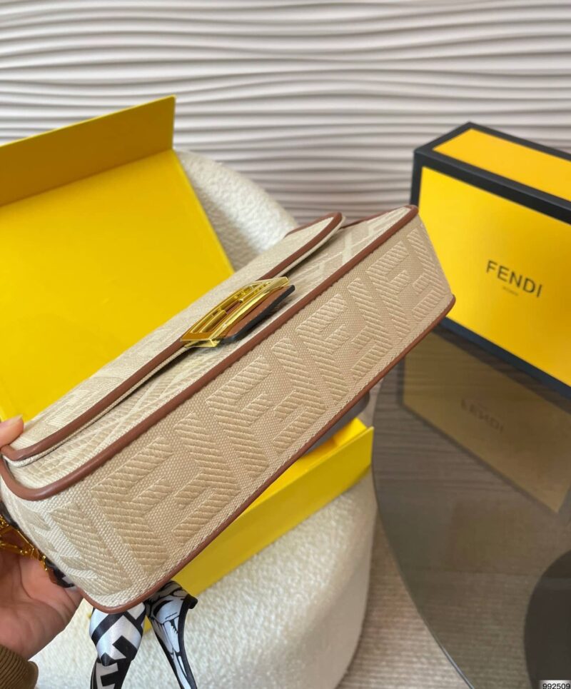 FENDI BAGUETTE NATURAL STRAW BAG WITH FF EMBROIDERY 26CM 8BR600AP4MF1LMP