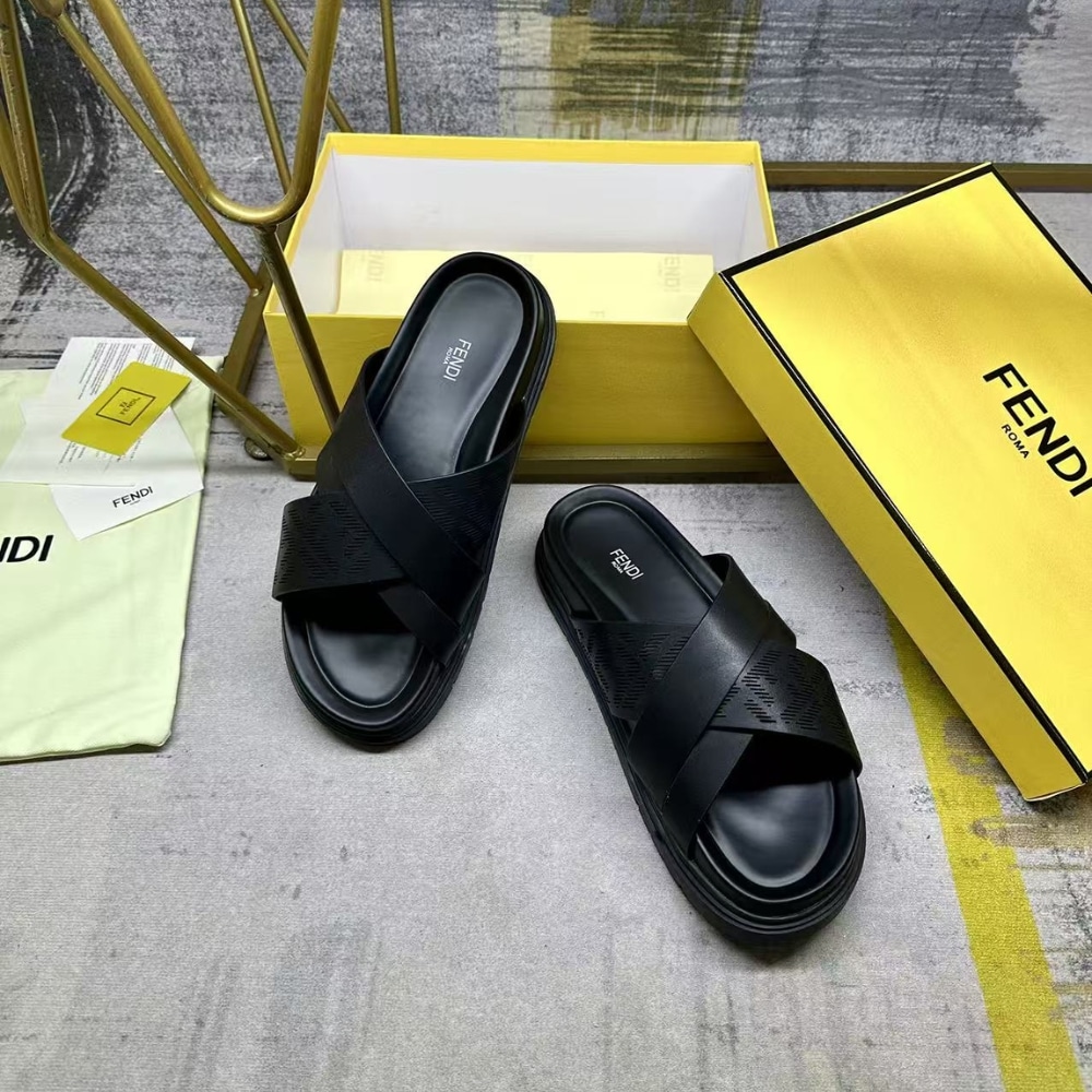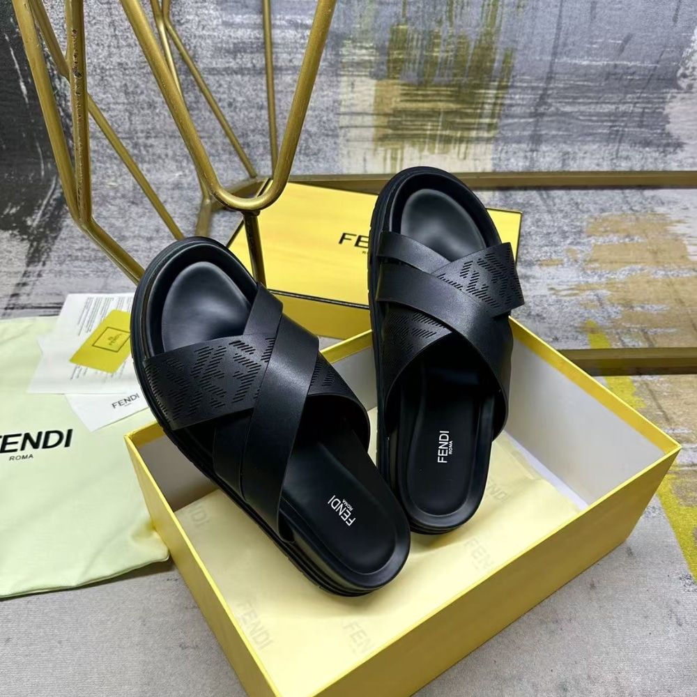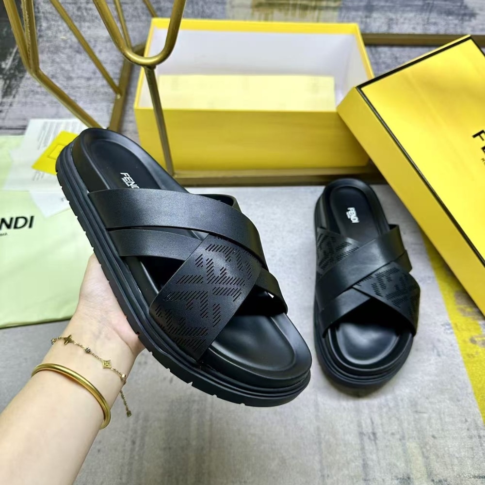 - Made of smooth black leather with a band decorated by a laser-cut FF motif.
