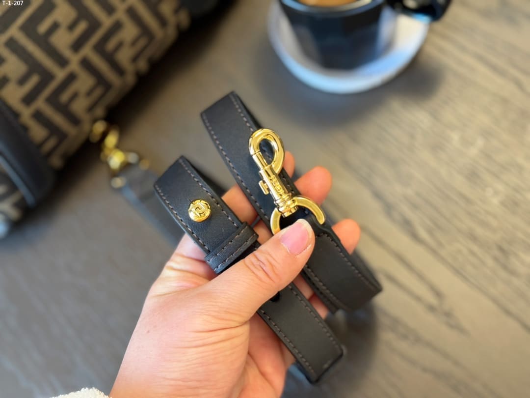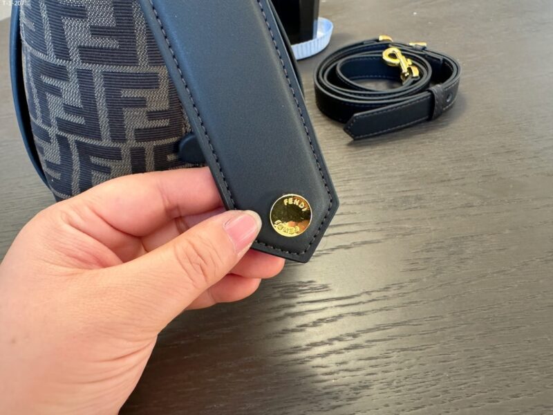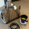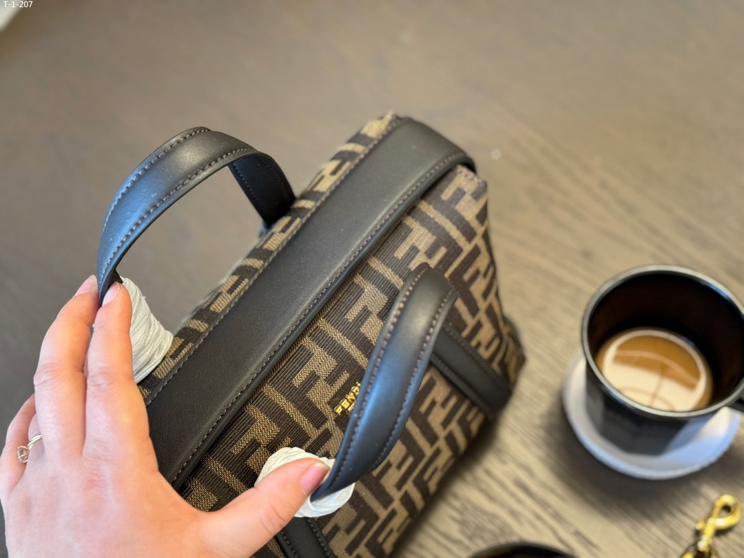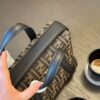 - Made of fabric with an FF jacquard motif trimmed with dark brown smooth leather.