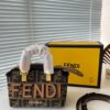 - Made Of An Ff Motif Jacquard Fabric In Brown With Fendi Roma Lettering In Beige Leather.