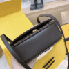 - Small satchel bag with curved, feminine lines made of fabric with an FF jacquard motif.