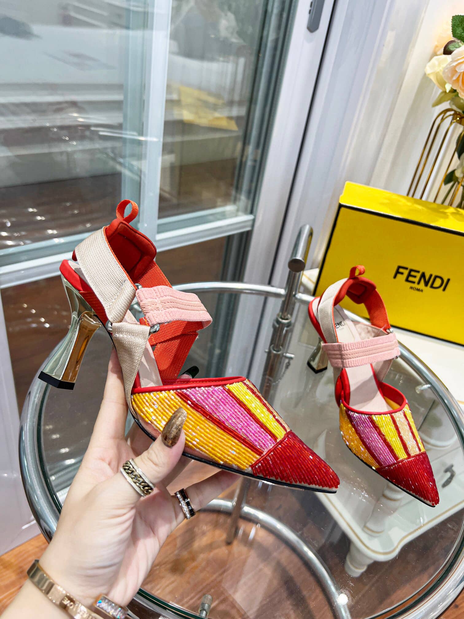 FENDI COLIBRI 85MM BEADED SLINGBACK PUMPS RED