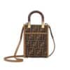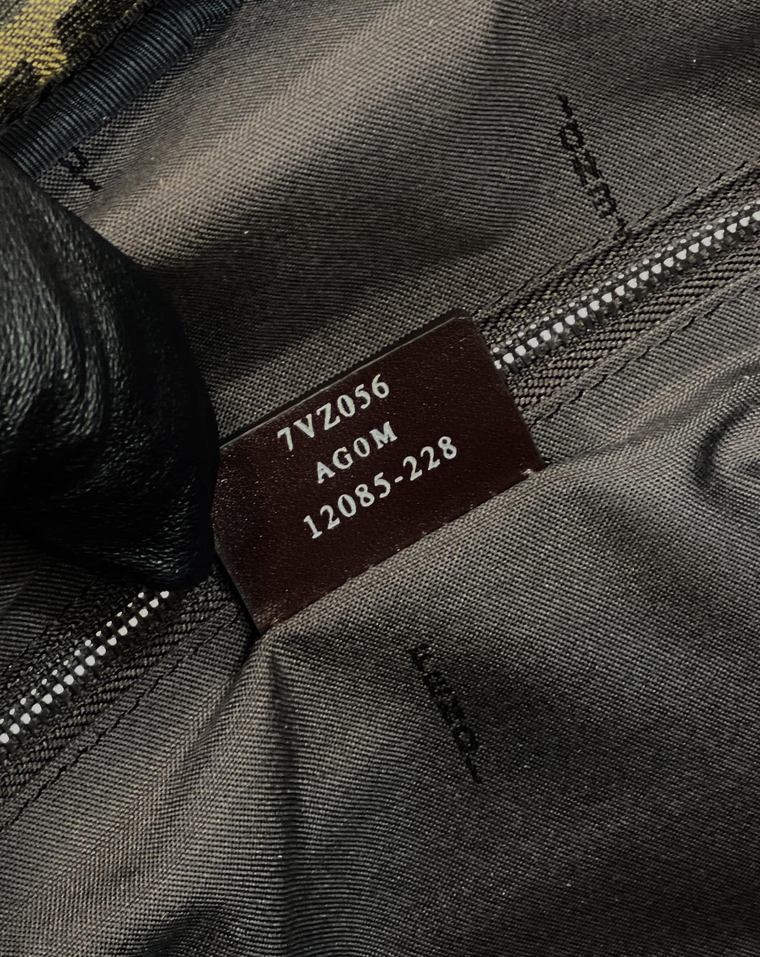 - Brown leather details and flap with embossed Fendi Roma logo.