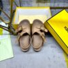 - Triple-band flat cross-over slides with FF Baguette decorative buckles.
