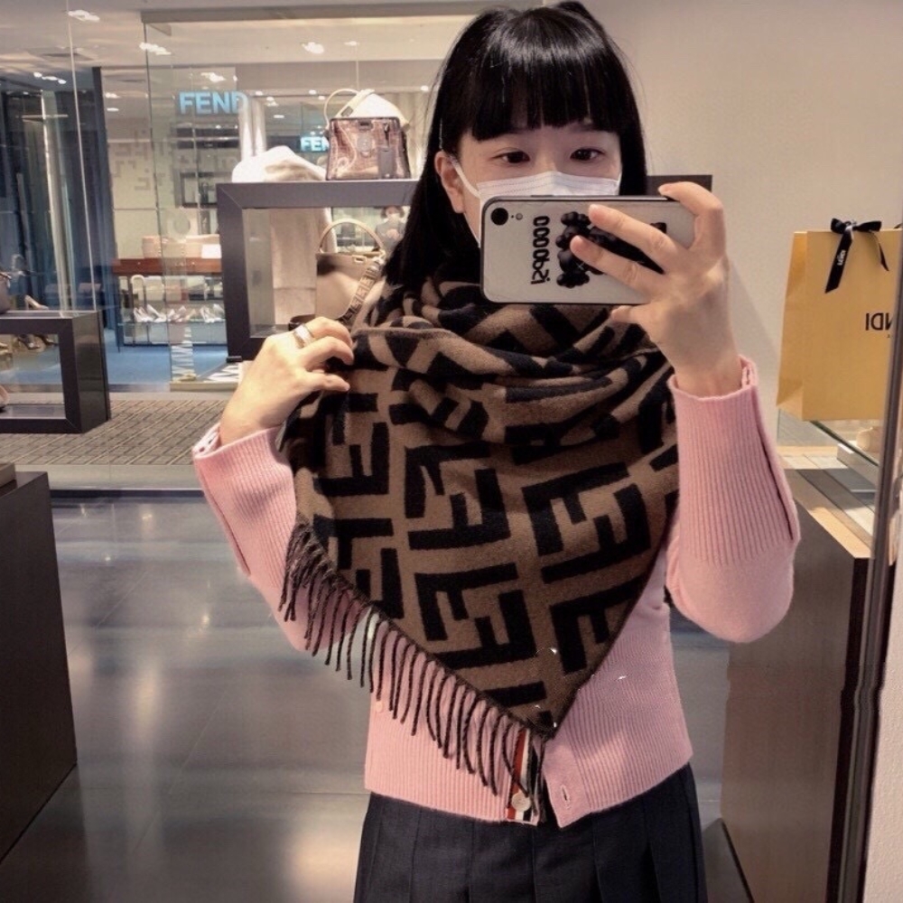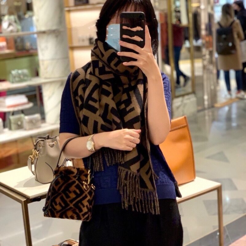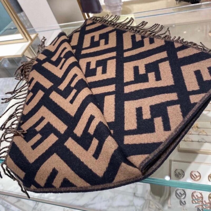 Fendi FF Scarf Brown Cashmere Scarf / 70.9 x 25.6 inches / Brown cashmere / Cozy Scarf