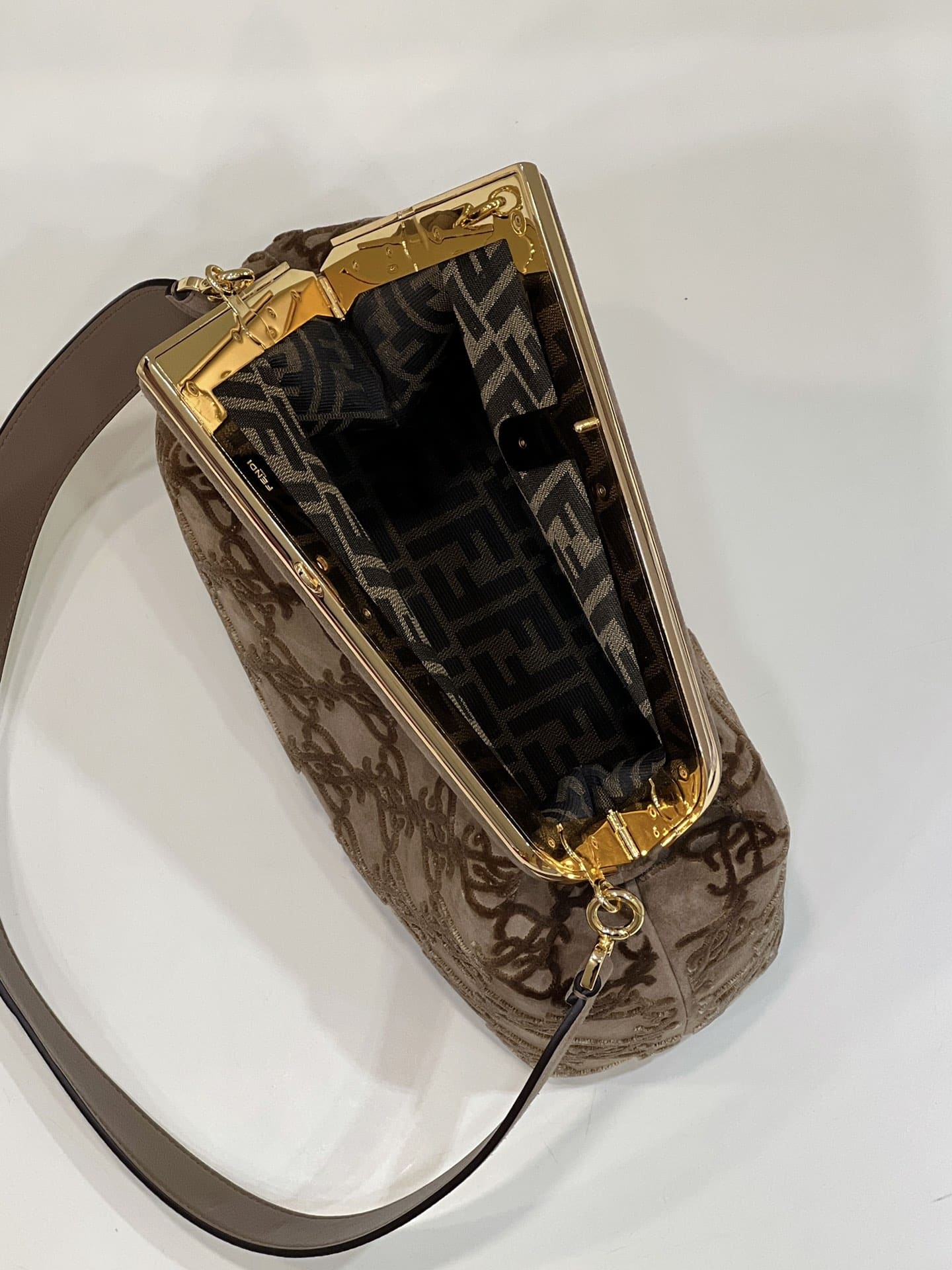 - Fabric-lined interior compartments with the iconic FF motif, removable internal hooks and gold-finish metalware.