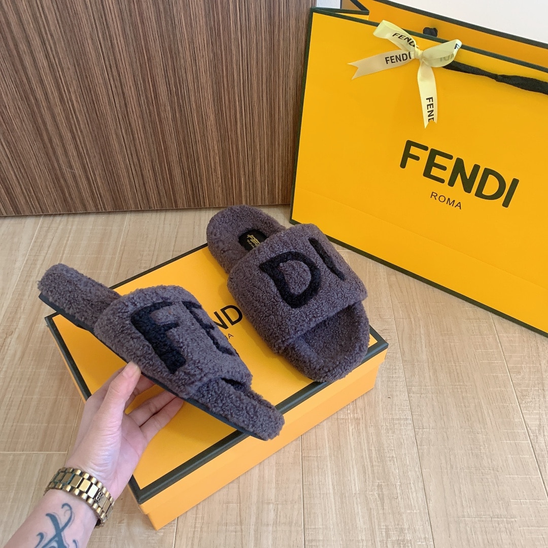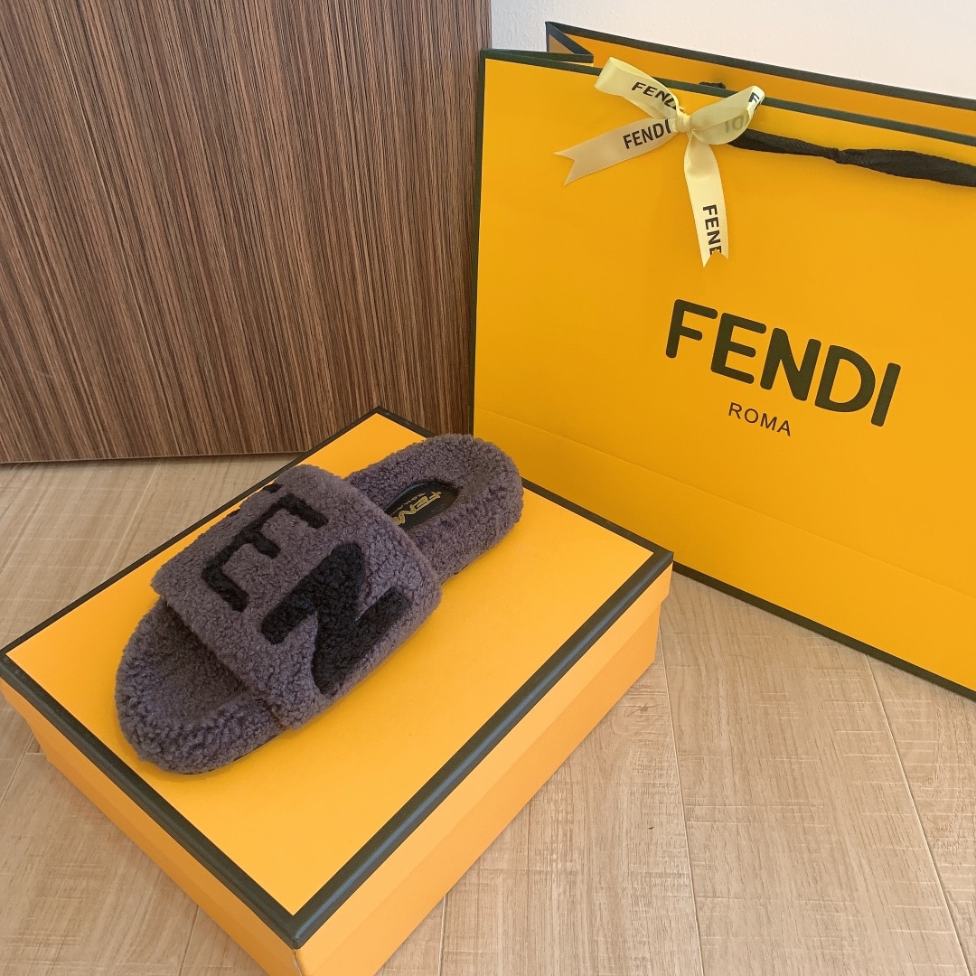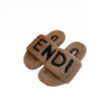 FENDI FLEECE BLACK TEXT SLIPPERS GREY
