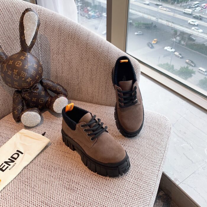 FENDI FORCE LEATHER LACE-UPS BROWN