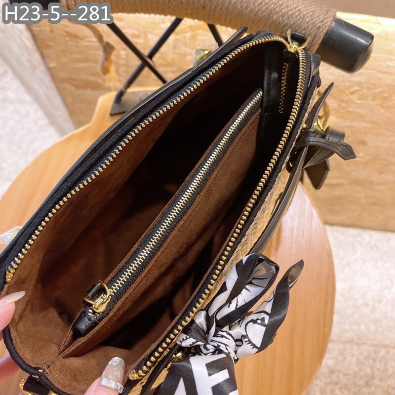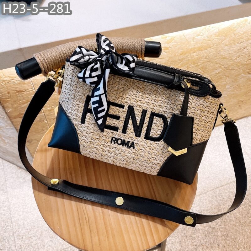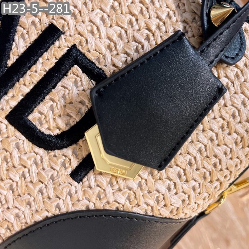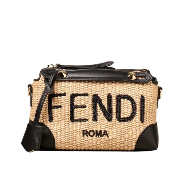 Fendi Mini ‘By The Way’ Straw Bag Beige And Black 25cm