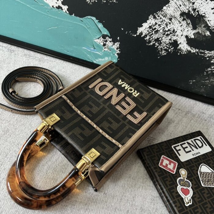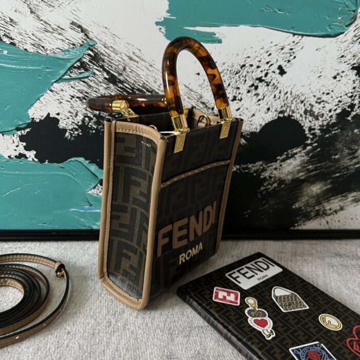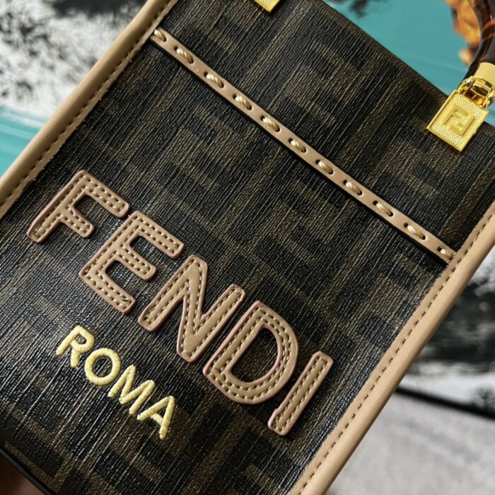 FENDI MINI SUNSHINE SHOPPER BROWN 18CM