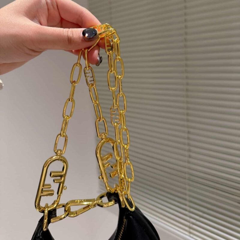 - Nano Fendigraphy Hobo bag with zip fastening, embellished with vintage gold metal FENDI lettering.