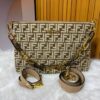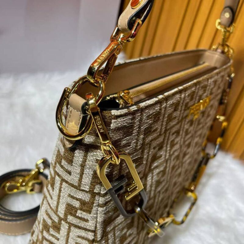 - Two flat pockets and metal accessories in a mix of gold and ruthenium finishes.
