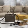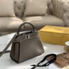 - Iconic small Peekaboo bag made of grey grained leather, finished with oversized hand stitching.