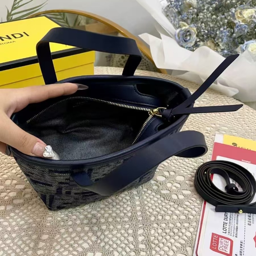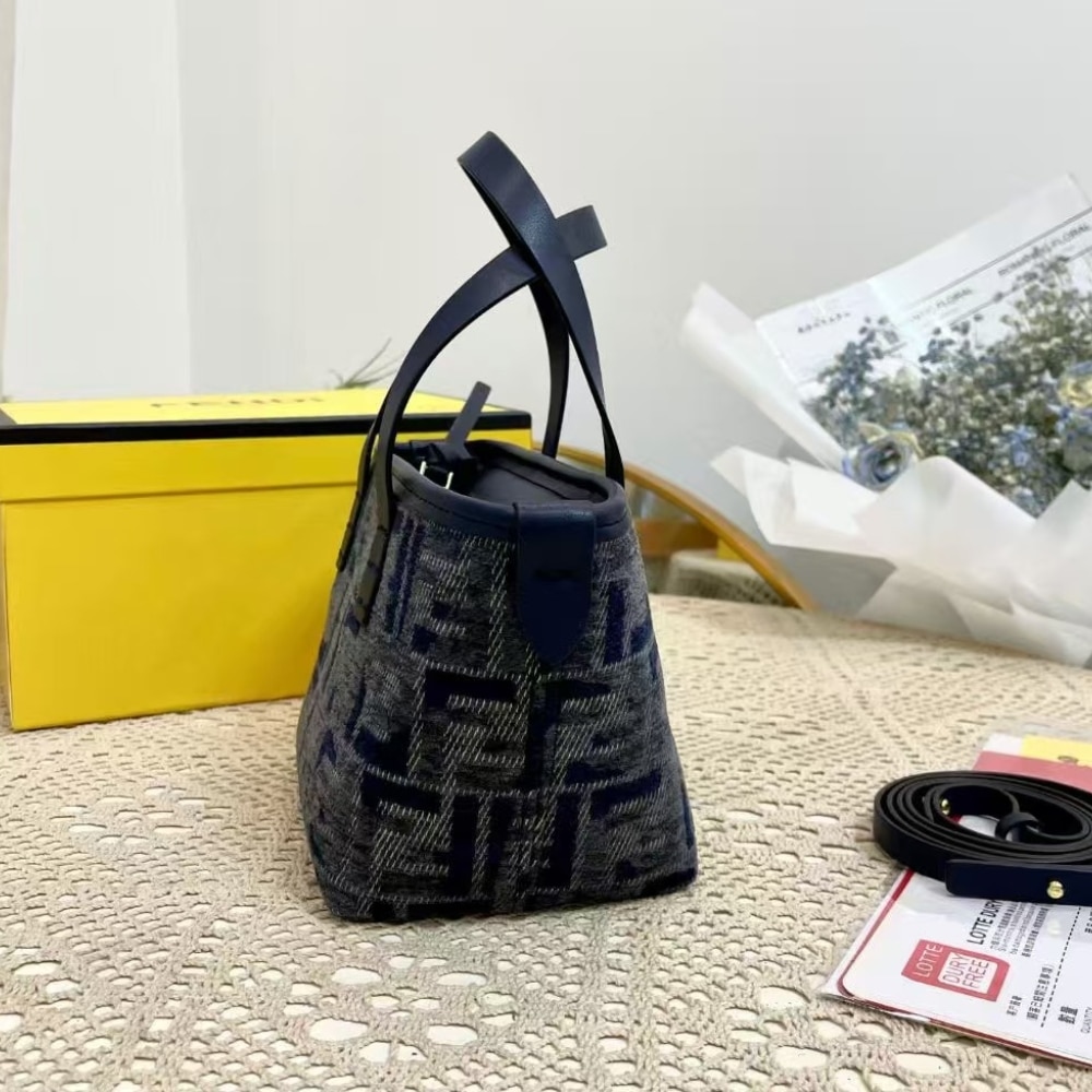 Fendi Roll Mini Dark Blue FF Chenille Bag Blue 8BS096ASU1F1PQK 16cm / 6.3 inches
