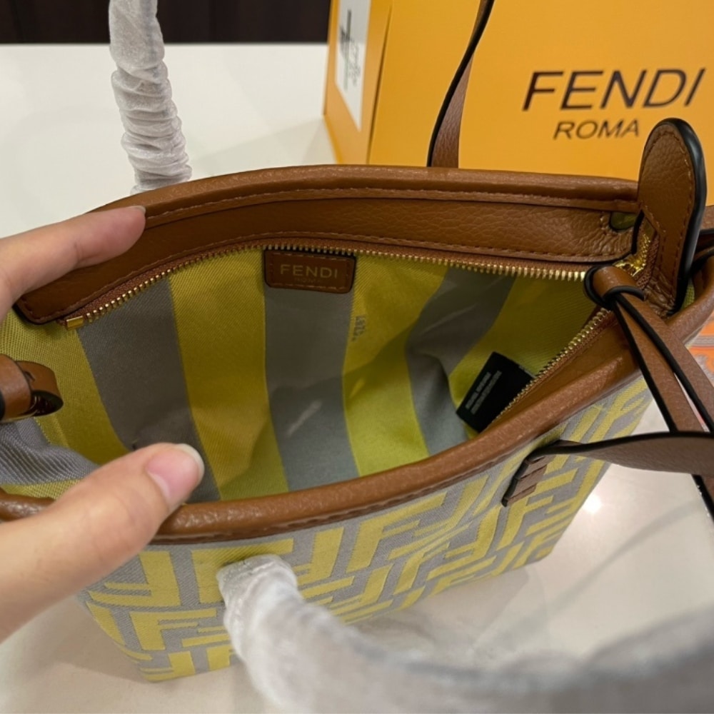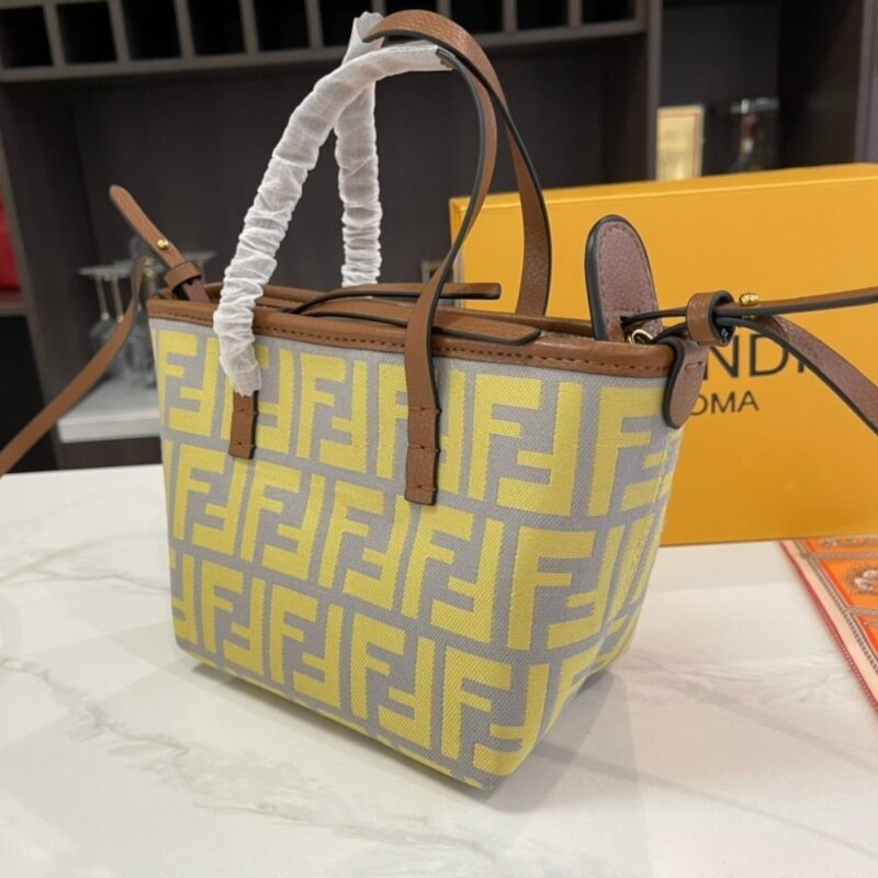- Mini shopping bag made of jacquard fabric with an iconic yellow FF motif.