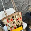 - Made of beige canvas fabric with the iconic embossed FF motif embroidered in multicolour yarn.