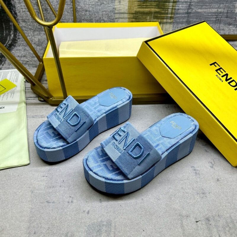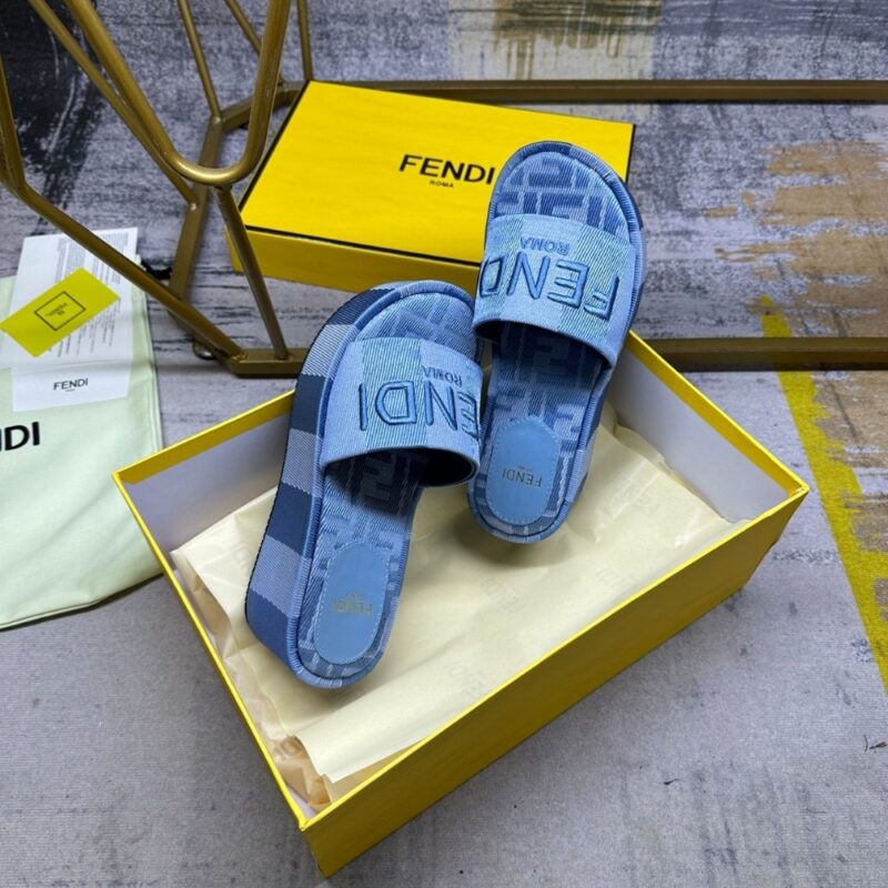 FENDI SUNSHINE FLATFORM SLIDES LIGHT BLUE DENIM 8R8515ASB5F1STD