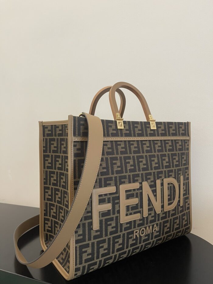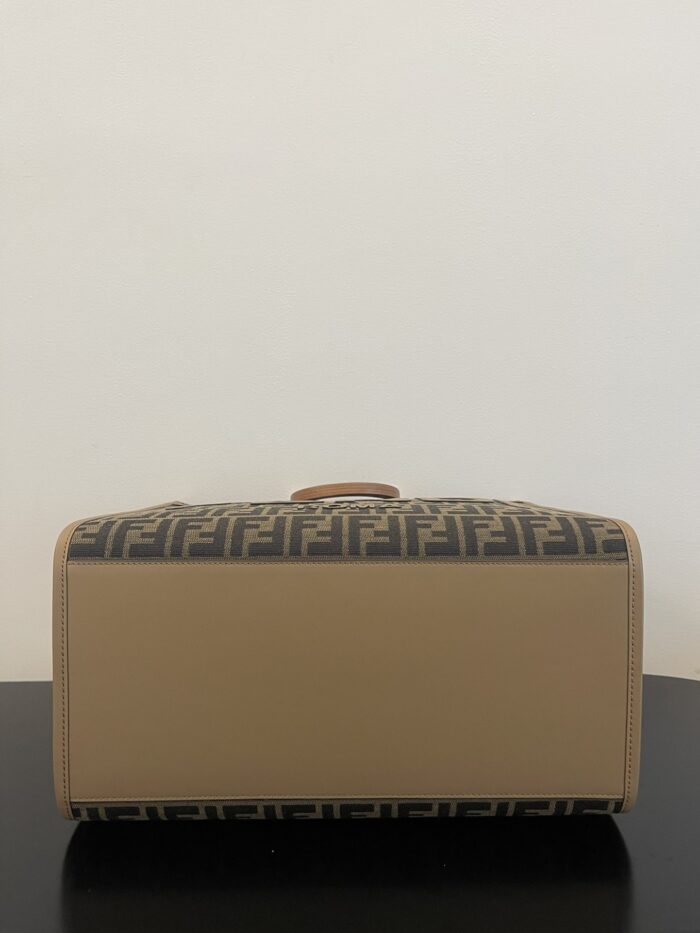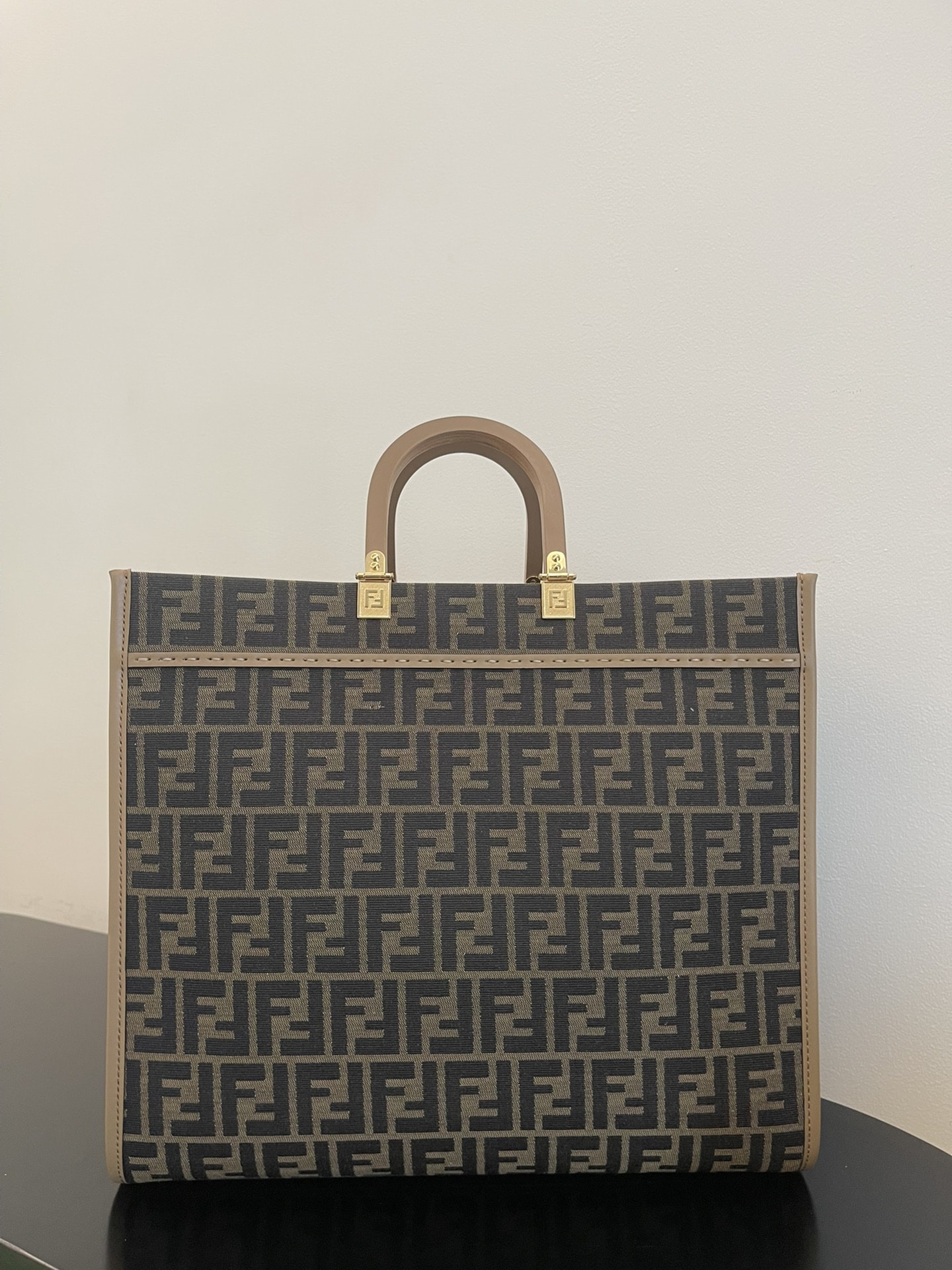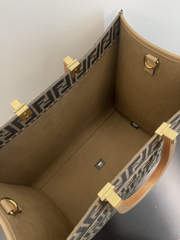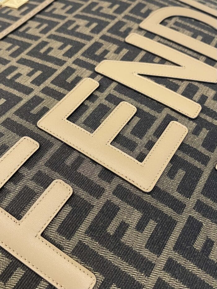 FENDI SUNSHINE LARGE LIGHT BROWN FF JACQUARD FABRIC SHOPPER 35CM