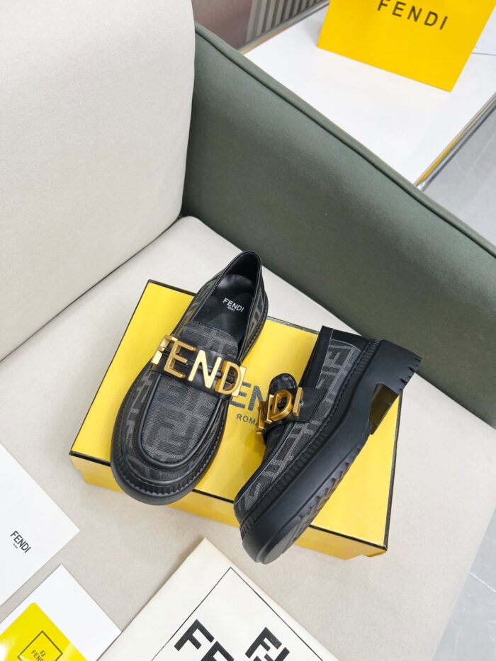 FENDIGRAPHY FF LEATHER LOAFERS GREY