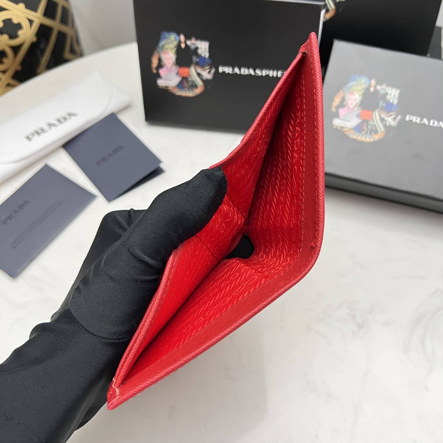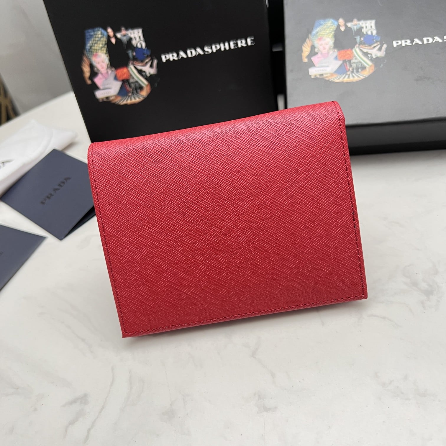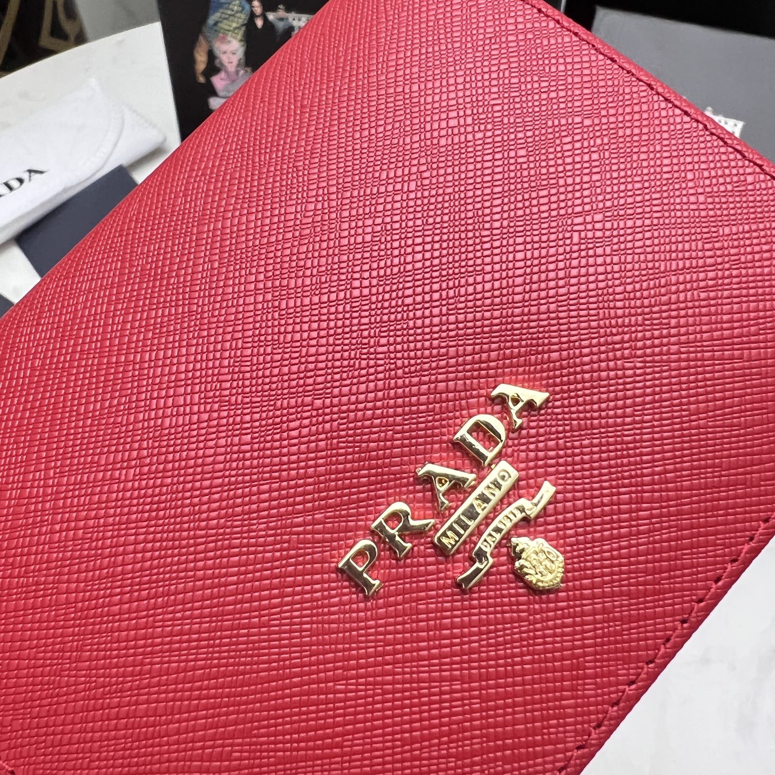 PRADA SAFFIANO LEATHER FLAP SMALL WALLET RED AND GOLD 10CM 1MV204 QWA F068Z