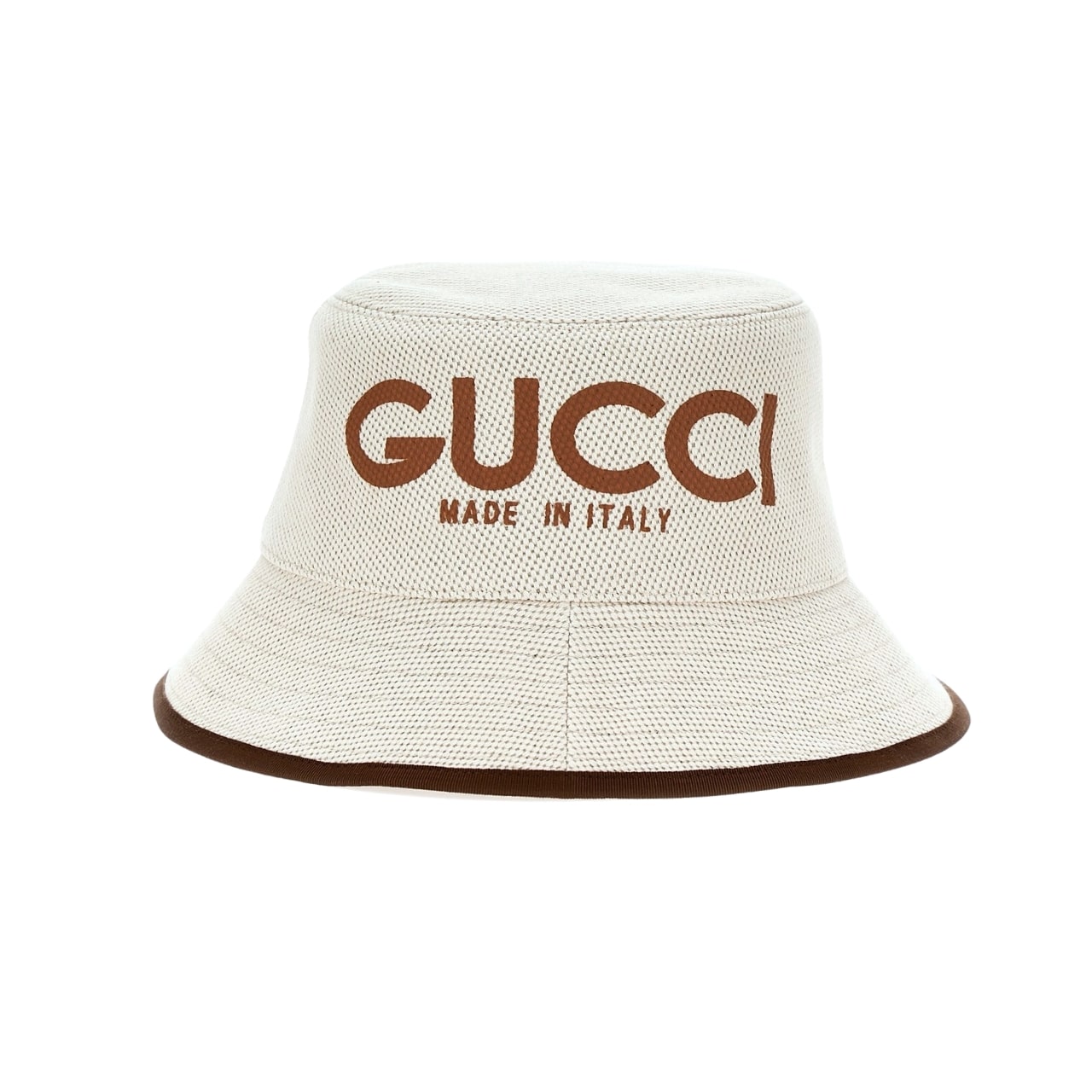 - Gucci logo-print cotton bucket hat in canvas with contrasting gucci.