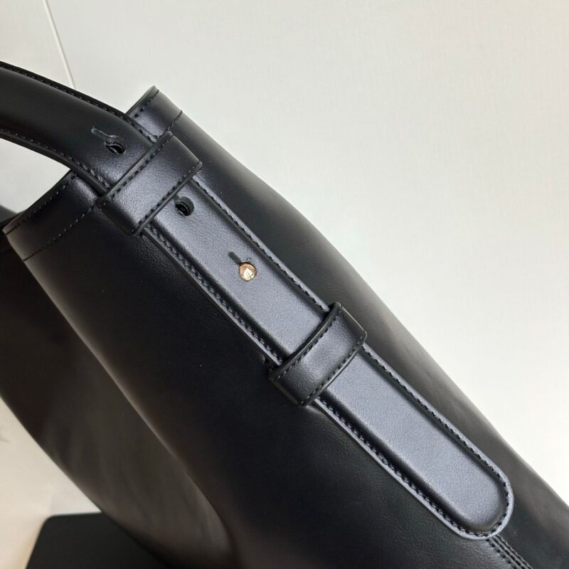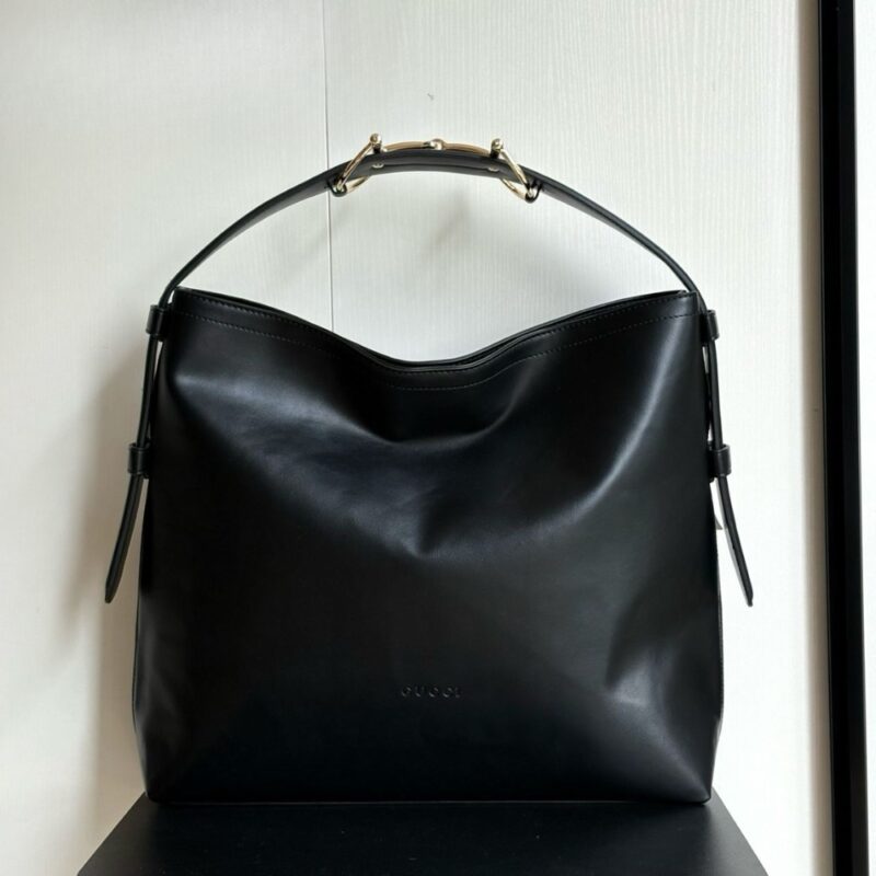- Horsebit detail on the shoulder strap