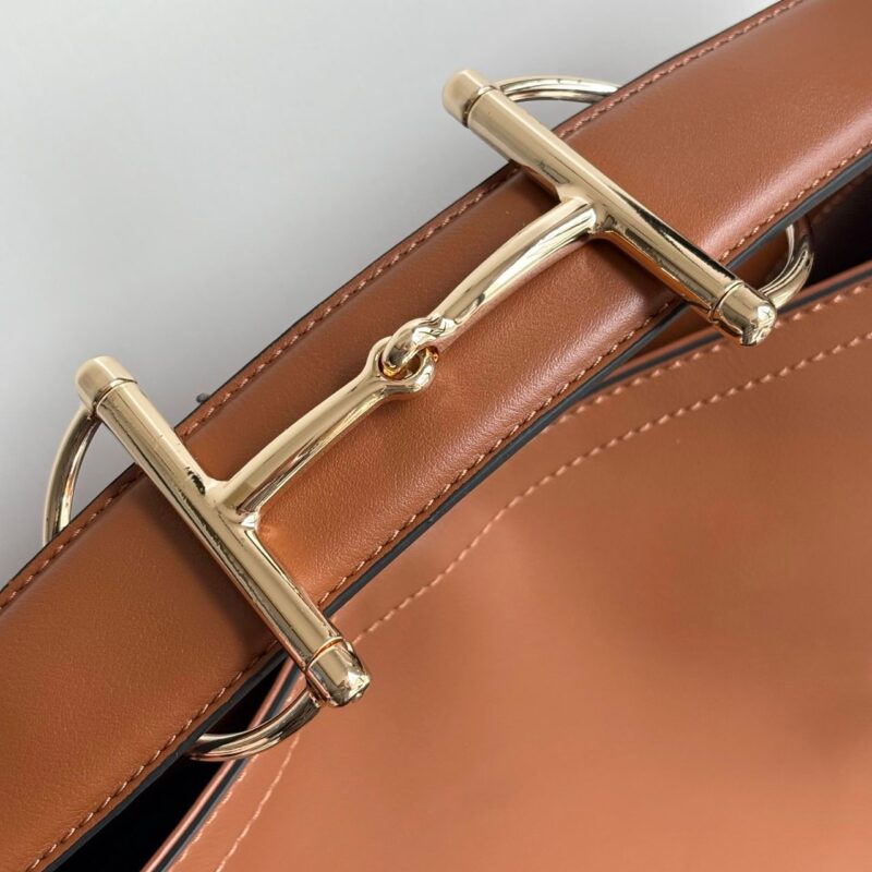 Gucci Beatrix Large Brown Leather / 15.7 x 14.2 x 4.7 inches / Horsebit detail / Tote Bag / Gold-tone hardware / Chic Style