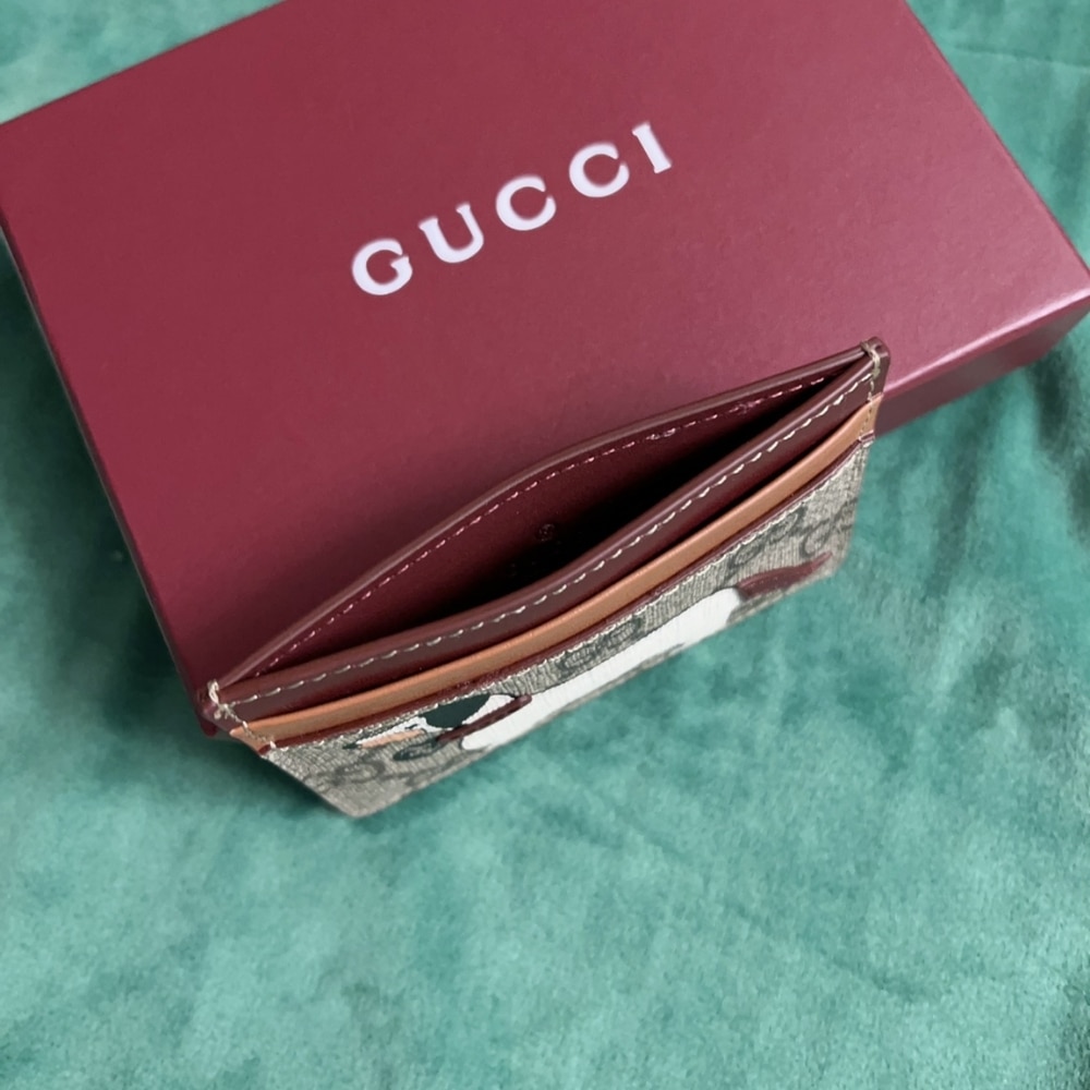 Gucci Bi-Color Gg Card Case With Dog Detail Beige And Dark Brown 11 cm / 4.3 inches