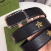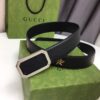 Gucci Black Belt With Square Silver Buckle And Bee Star 35Mm