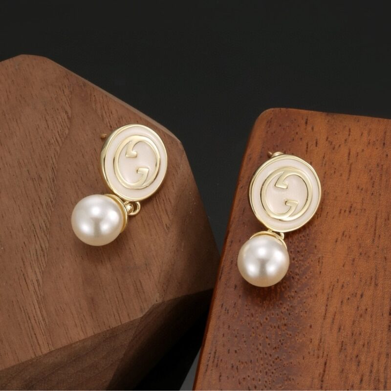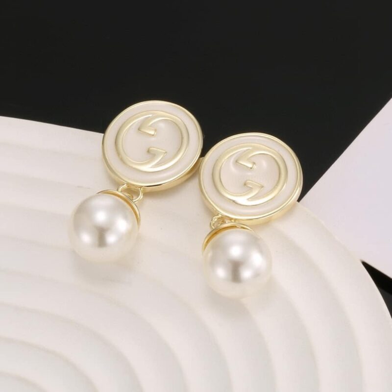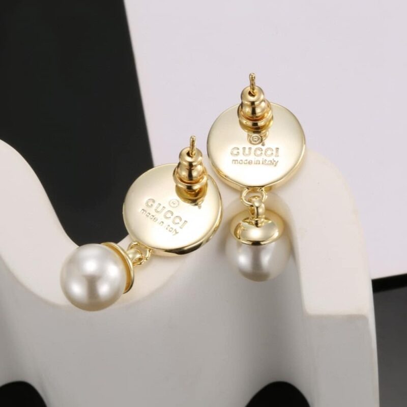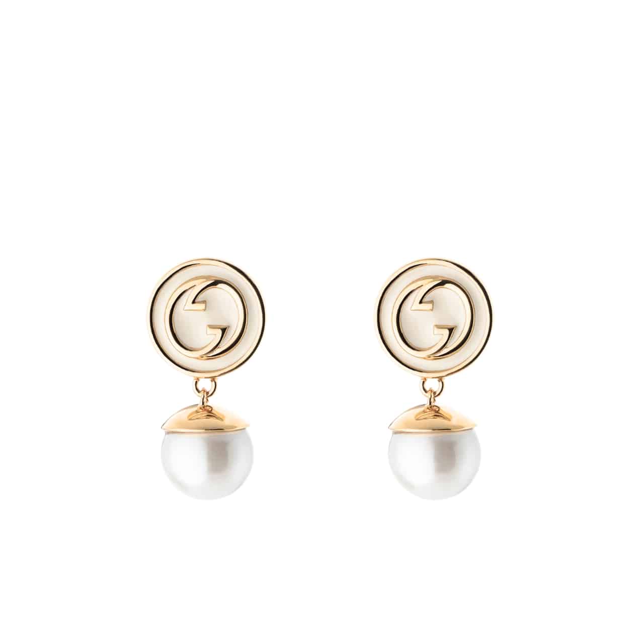 Gucci Blondie Pearl Drop Earrings Gold Tone