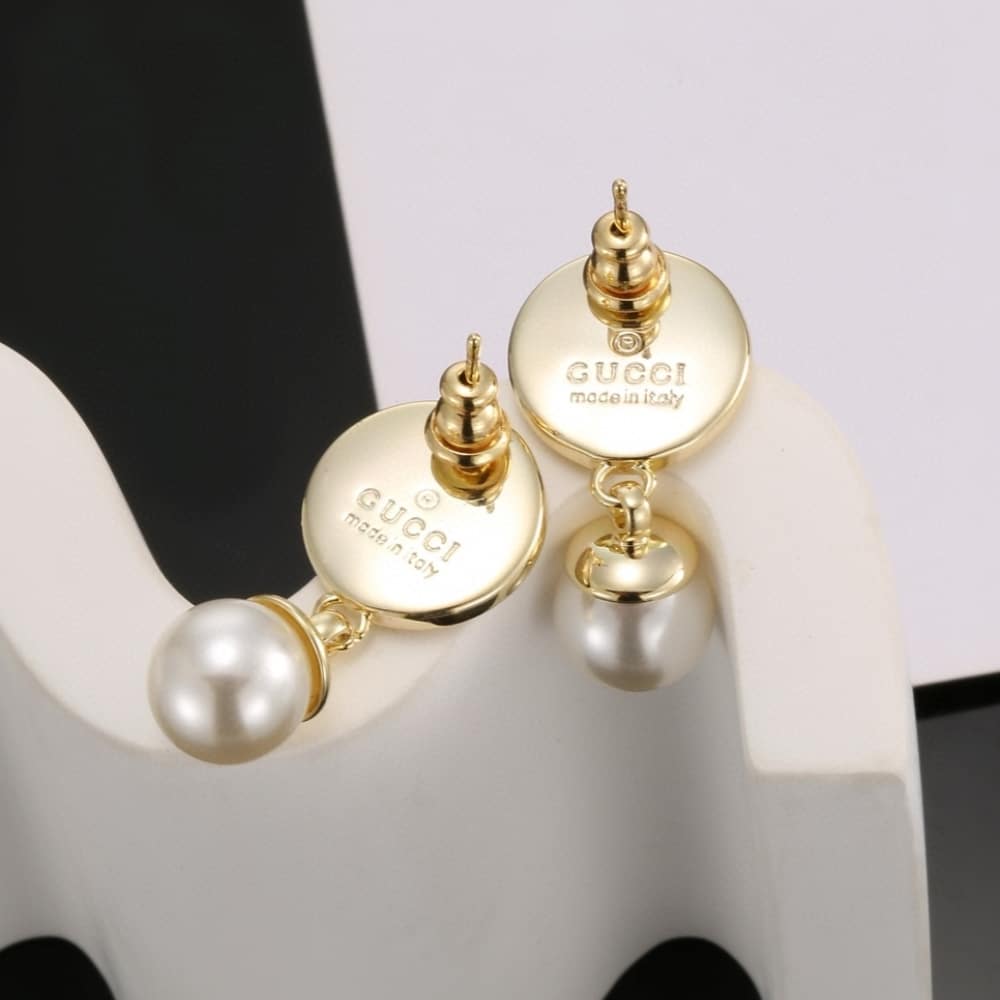 GUCCI BLONDIE PEARL DROP EARRINGS GOLD TONE 774612 I9757 8495
