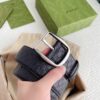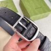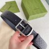 Gucci Calfskin Monogram Black Belt Silver Metal 4Cm
