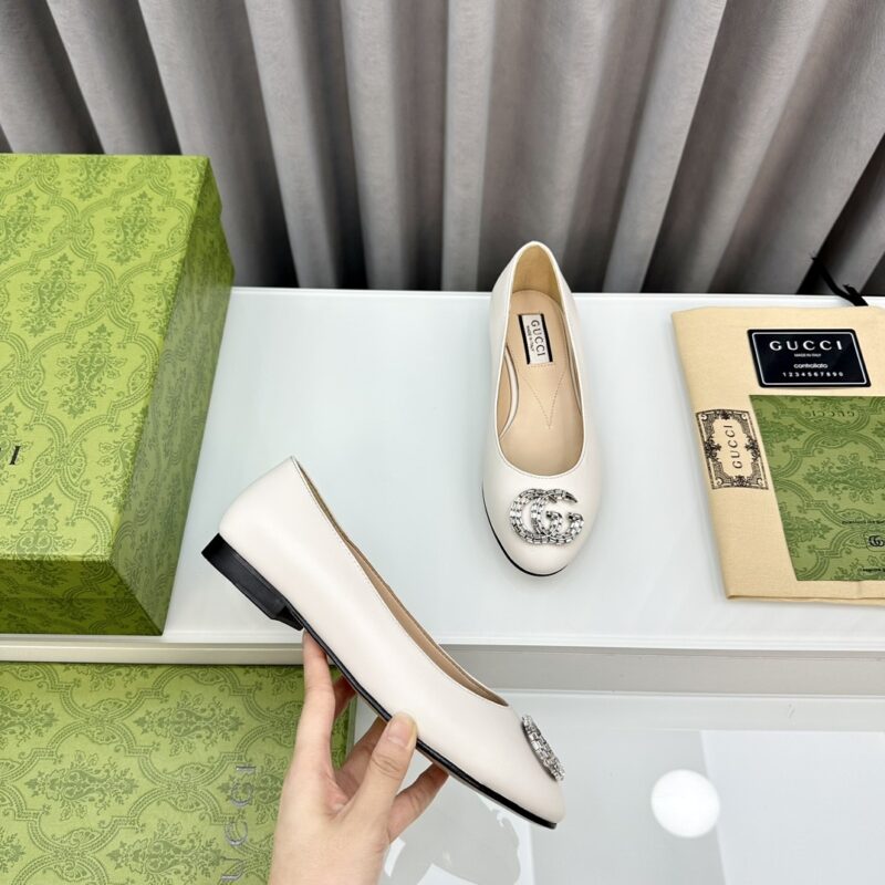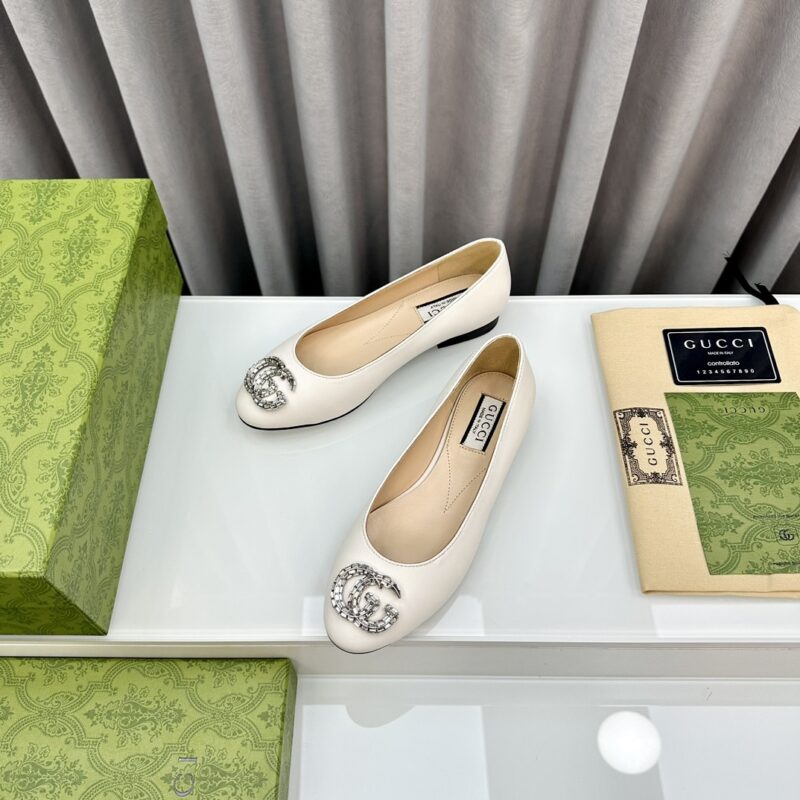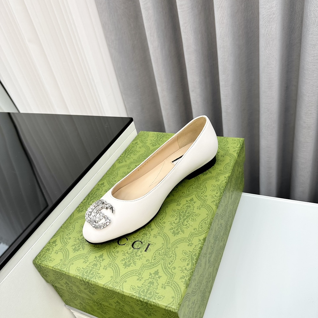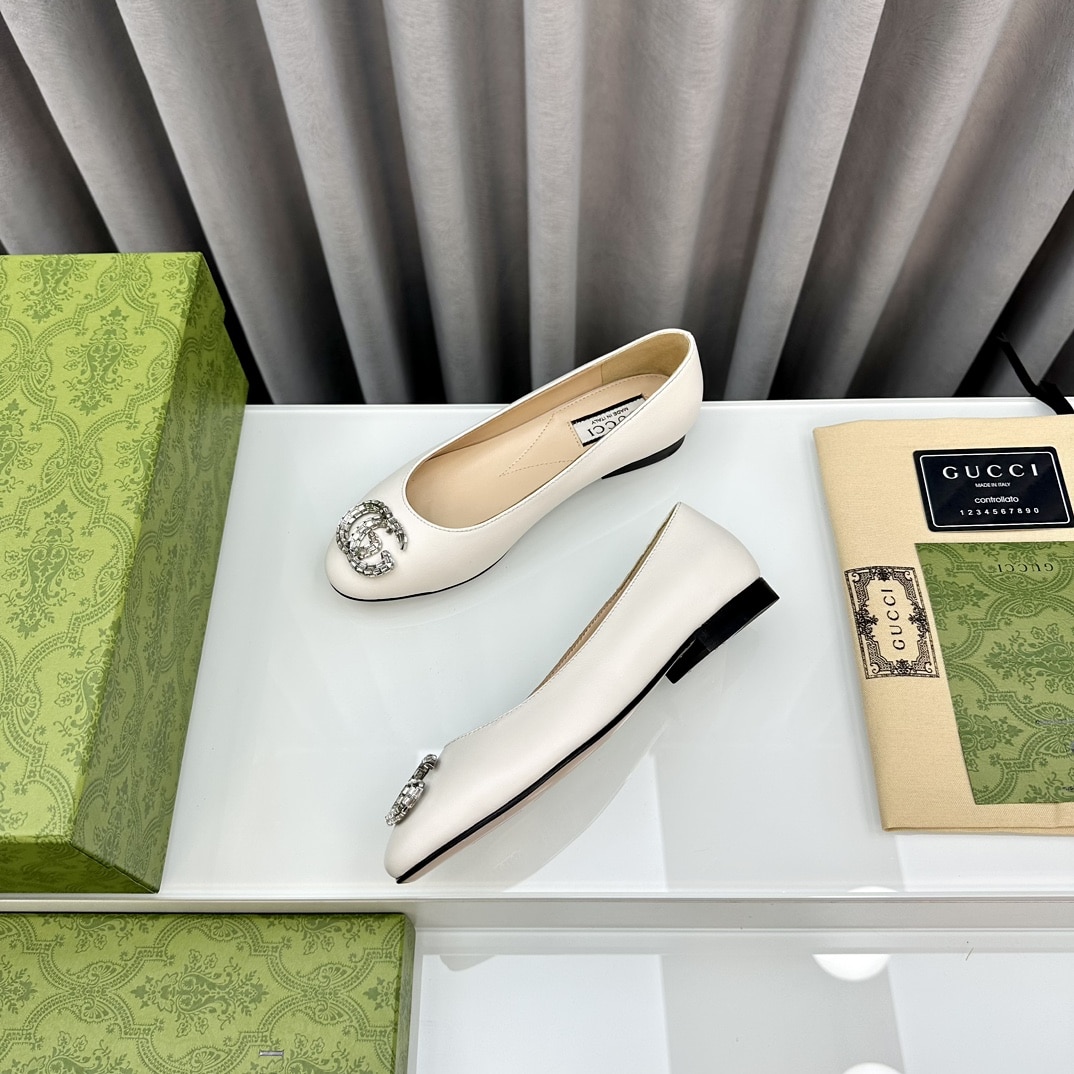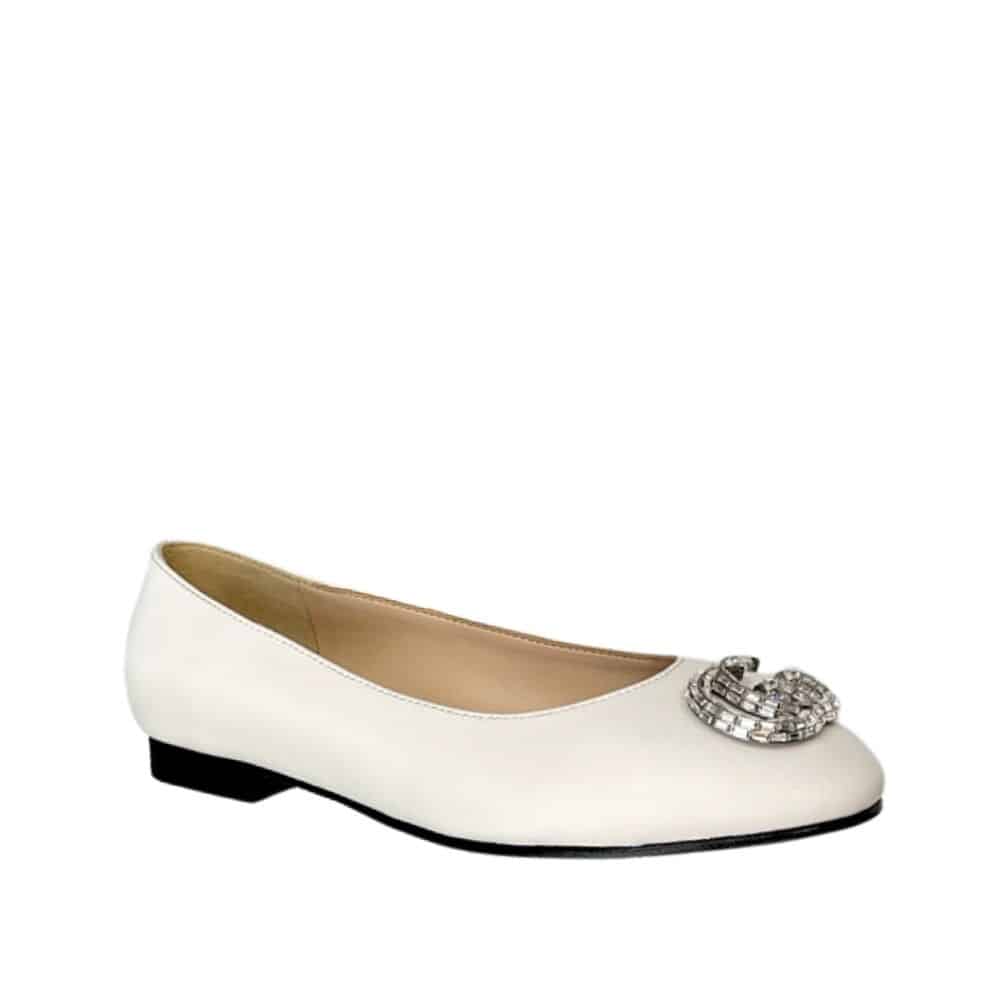 GUCCI CRYSTAL GG WOMEN’S BALLET FLAT WHITE
