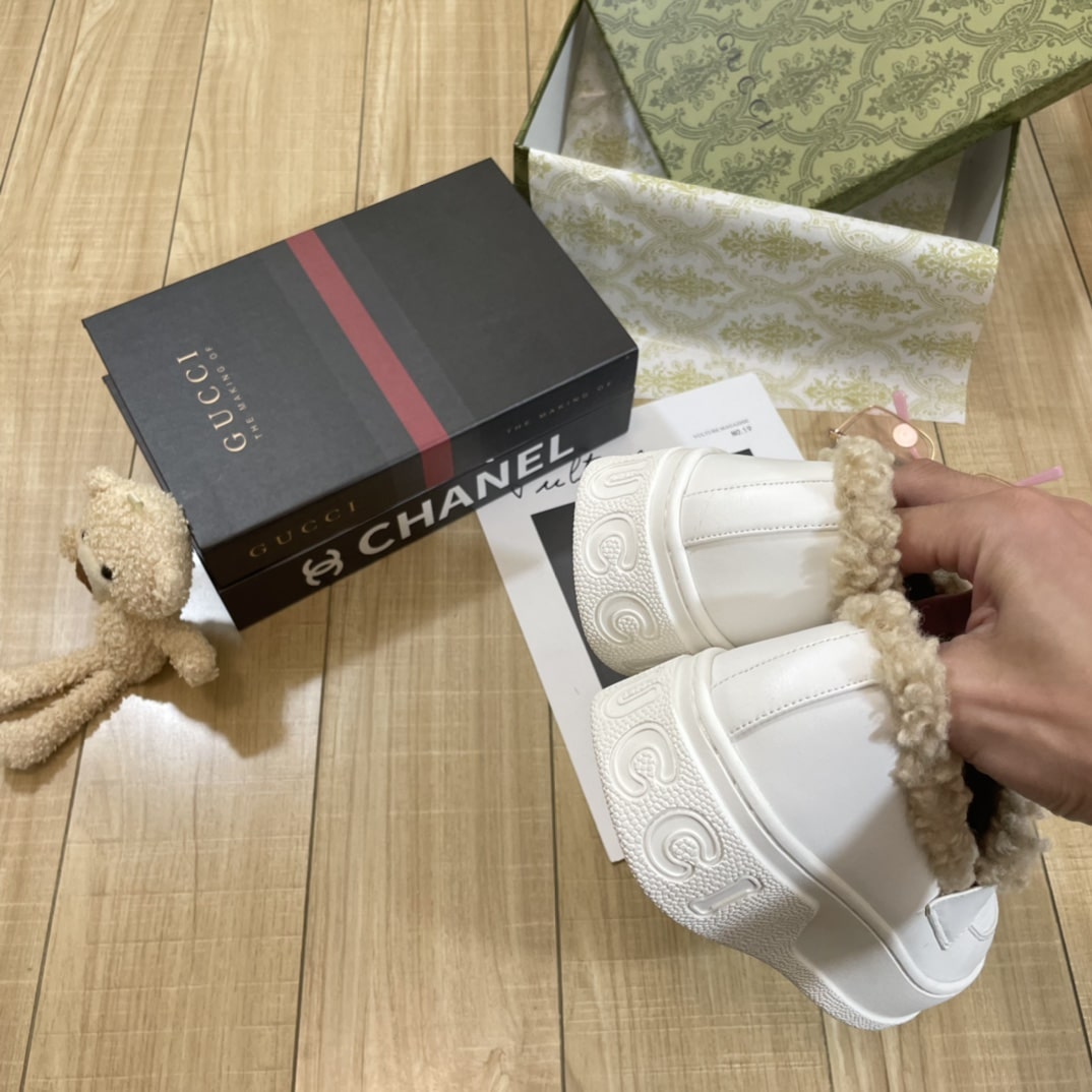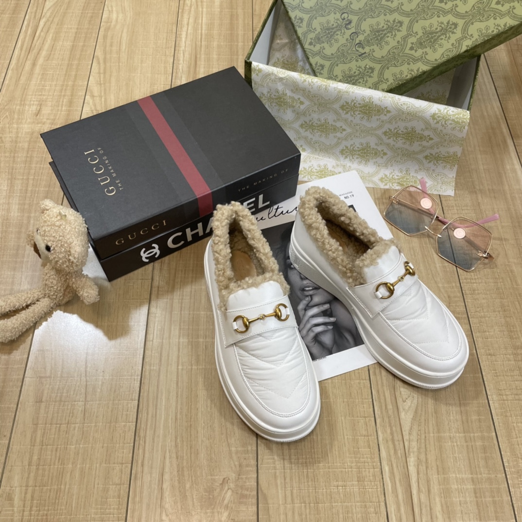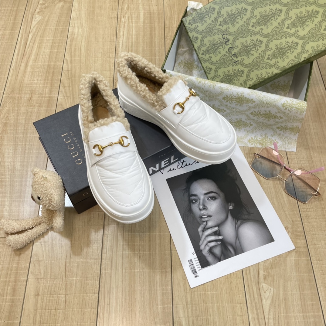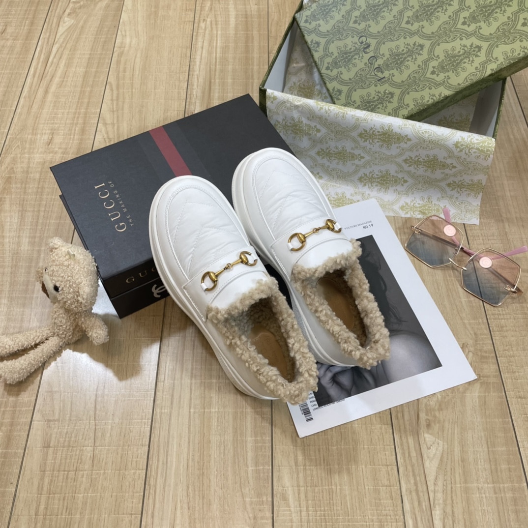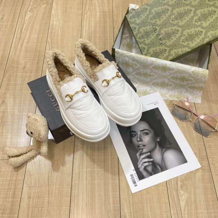 GUCCI FLEECE COLLAR WHITE LOAFERS